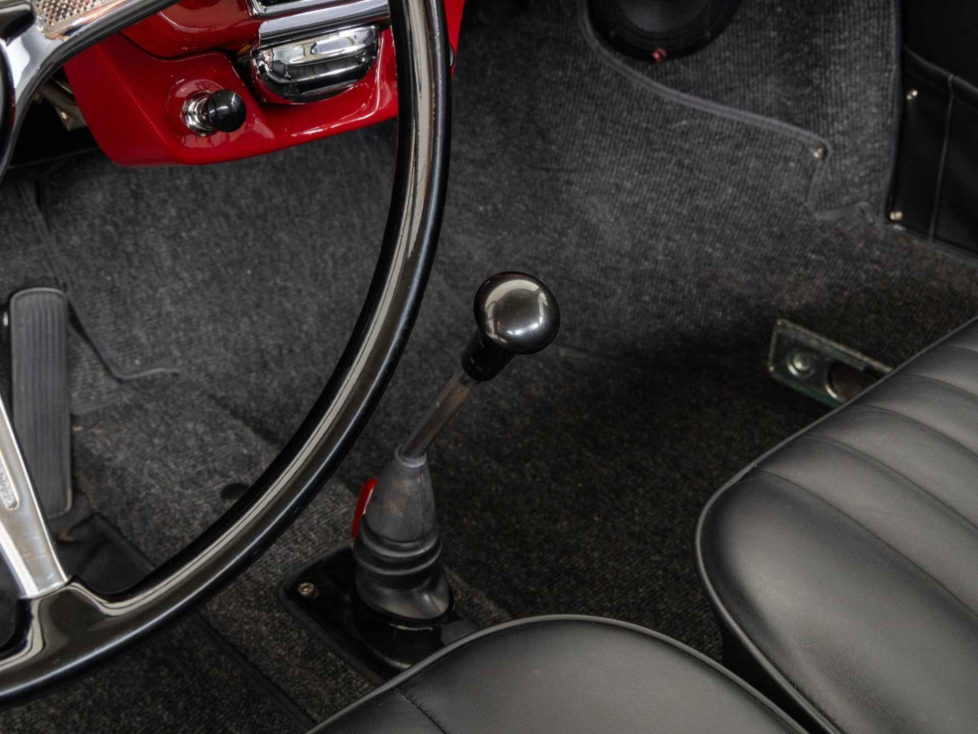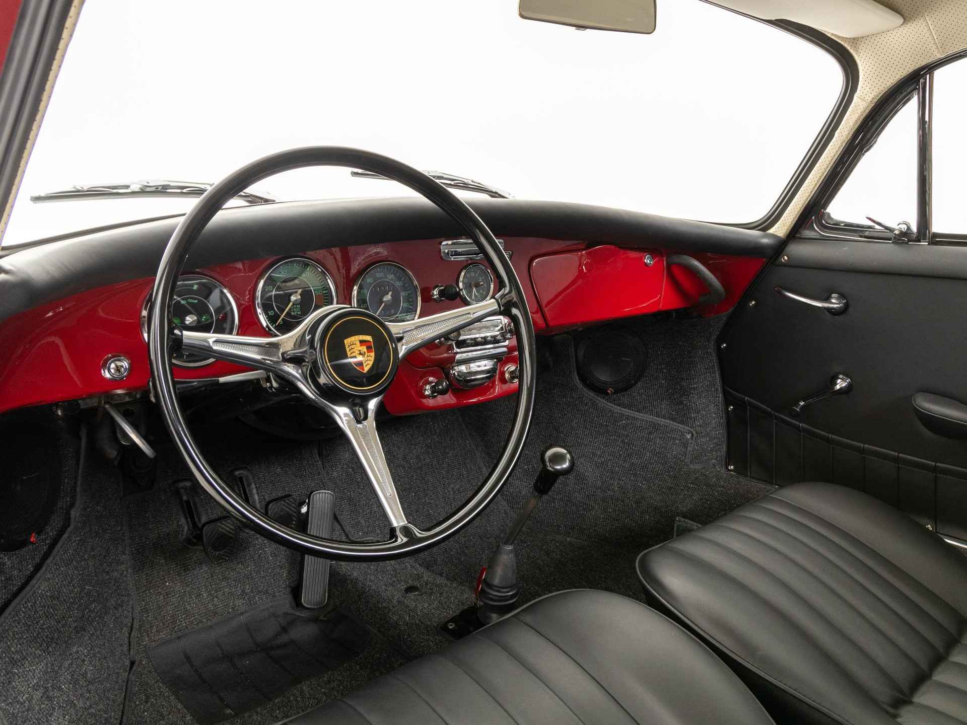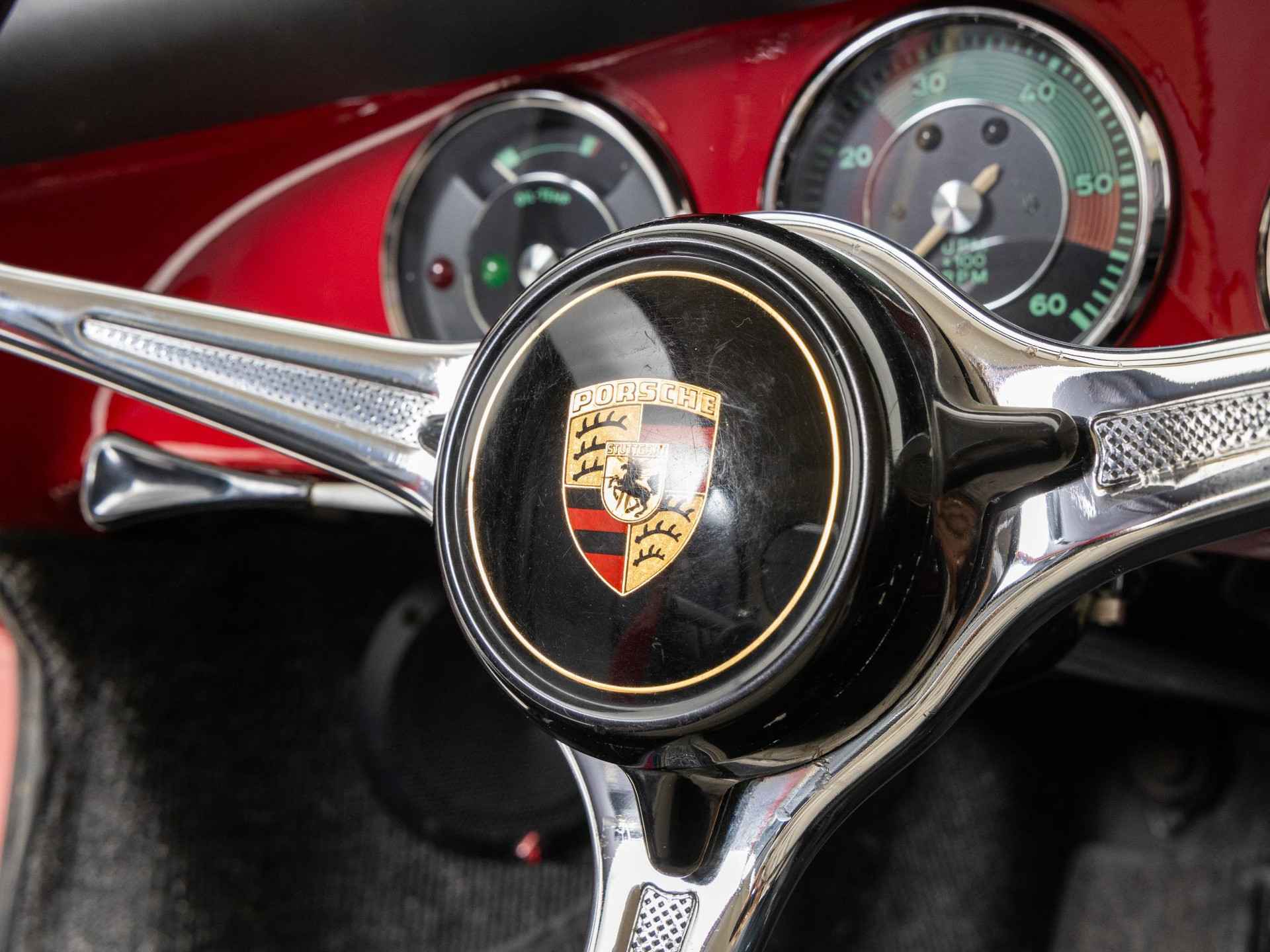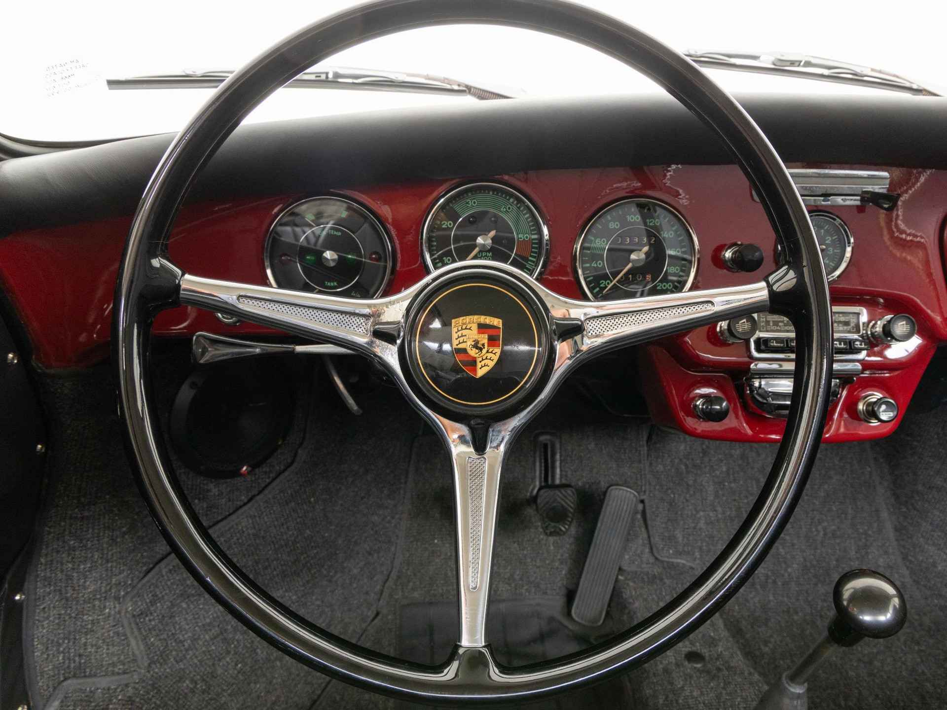 De originaliteit stond bij deze restauratie op de eerste plaats. De 356 is in zijn originele kleur Rubinrot met een zwart kunstlederen interieur afgewerkt. Tevens is deze beauty vandaag de dag nog altijd voorzien van zijn matching motor- en versnellingsbak.