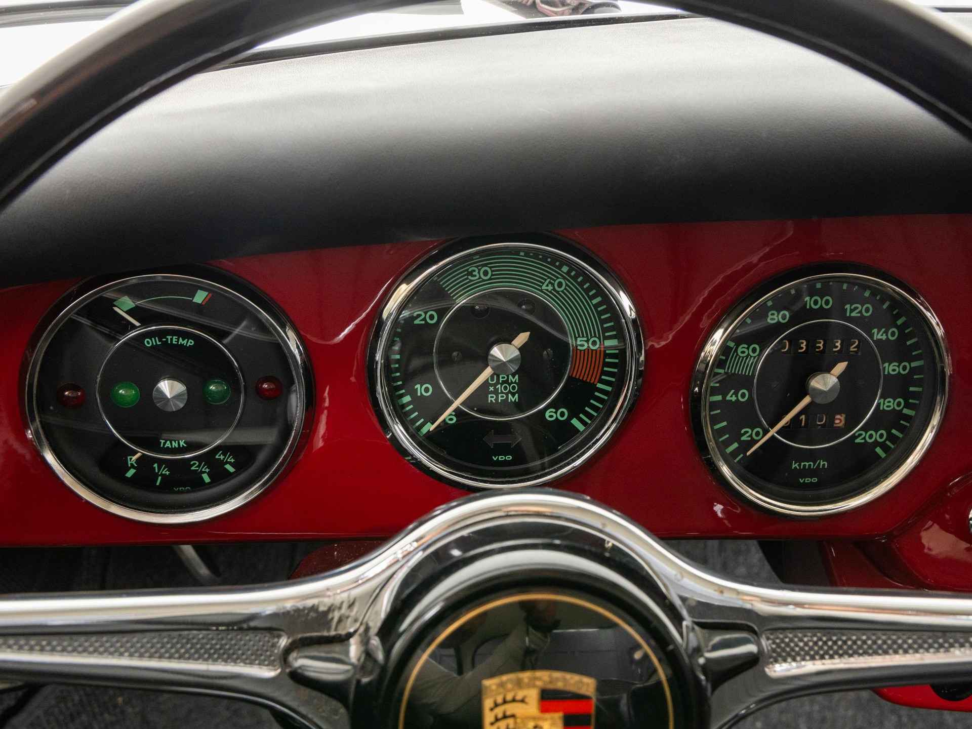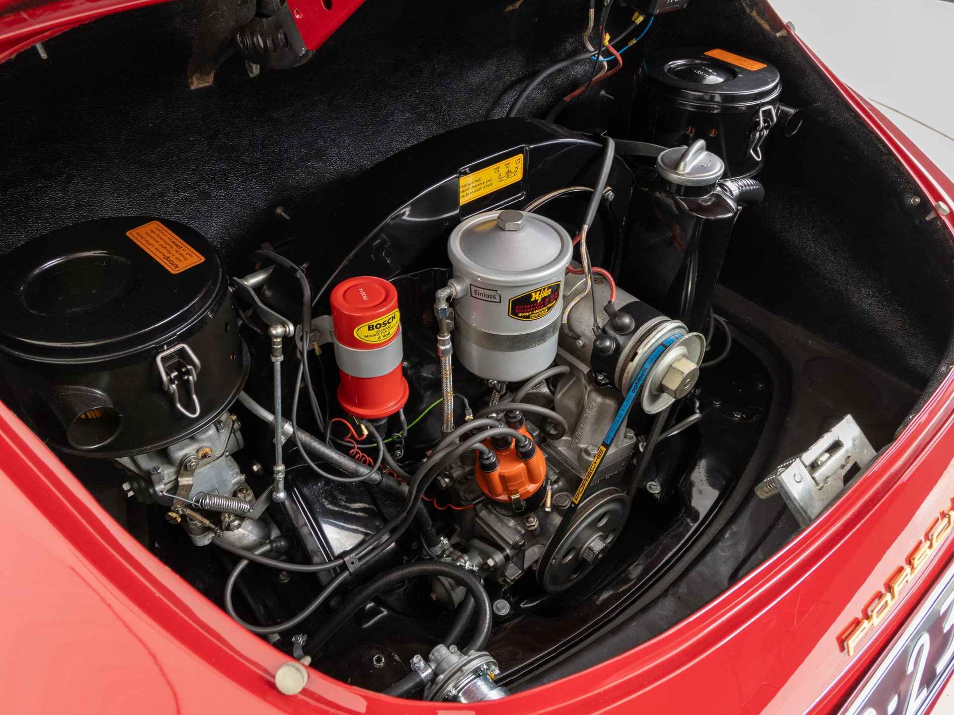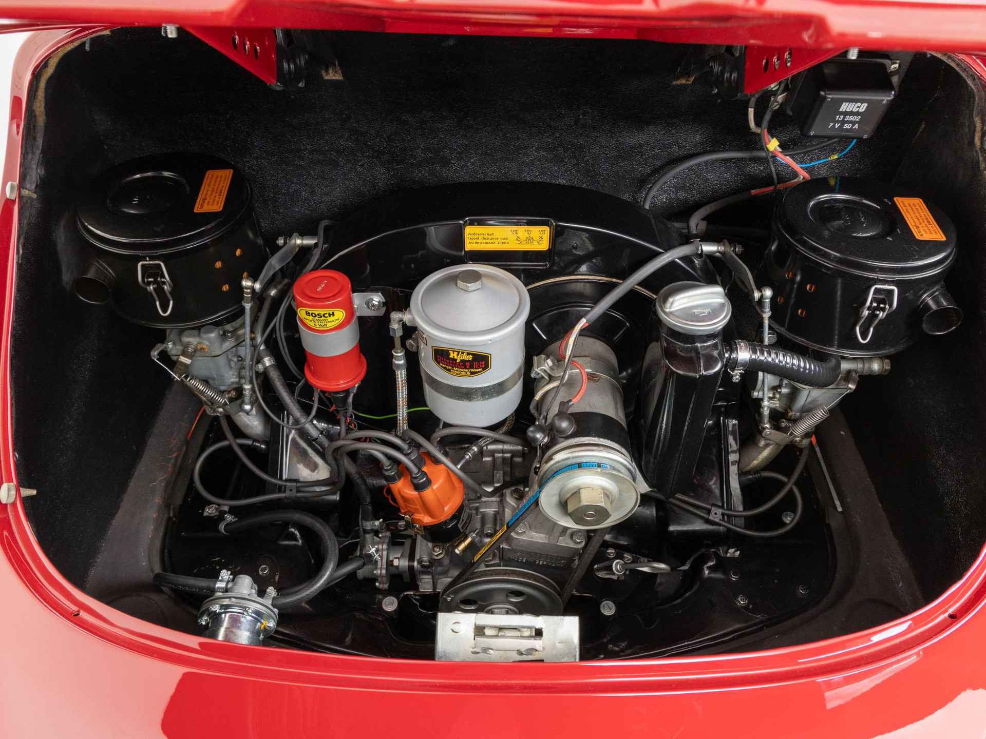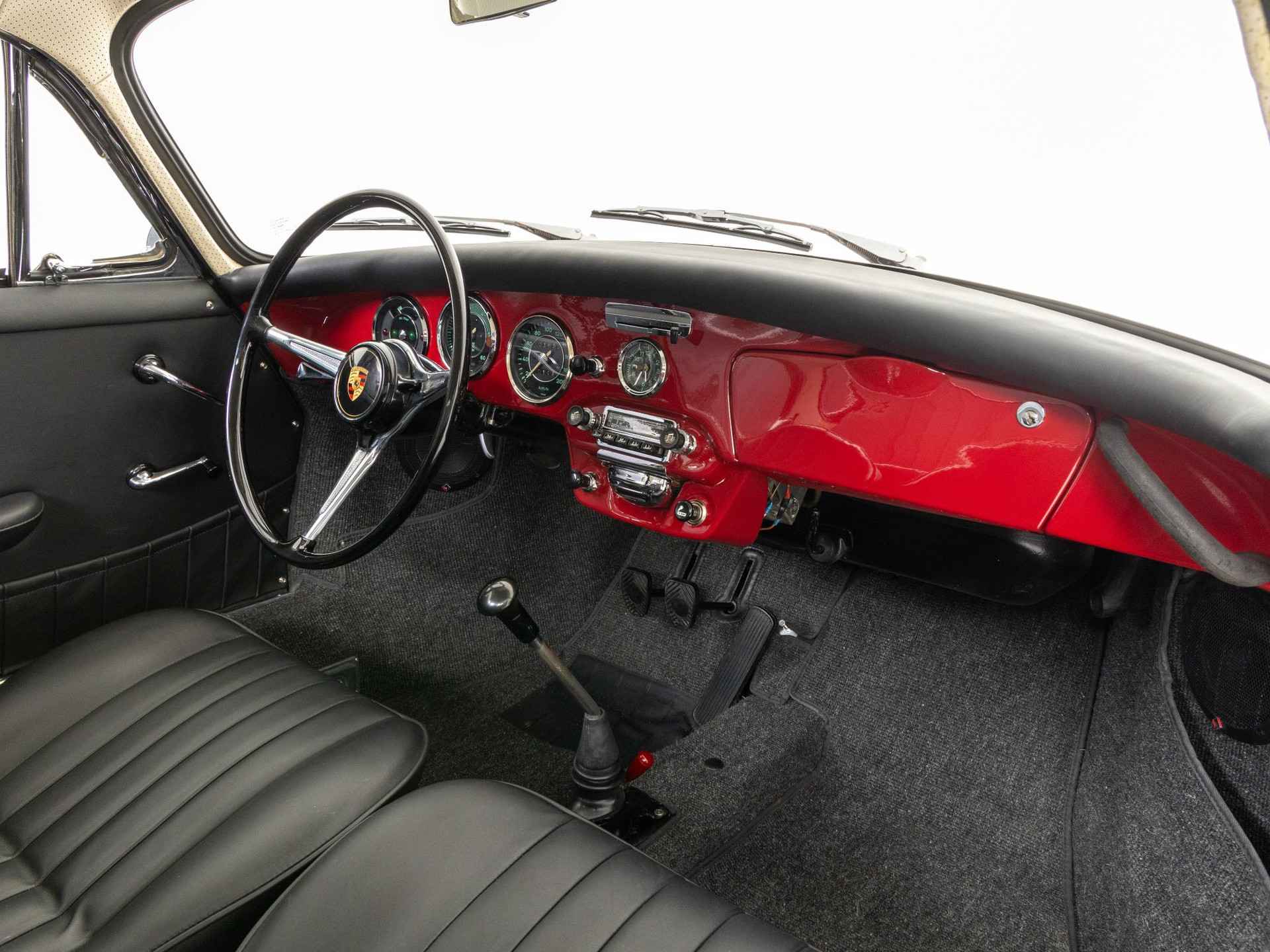 De originaliteit stond bij deze restauratie op de eerste plaats. De 356 is in zijn originele kleur Rubinrot met een zwart kunstlederen interieur afgewerkt. Tevens is deze beauty vandaag de dag nog altijd voorzien van zijn matching motor- en versnellingsbak.