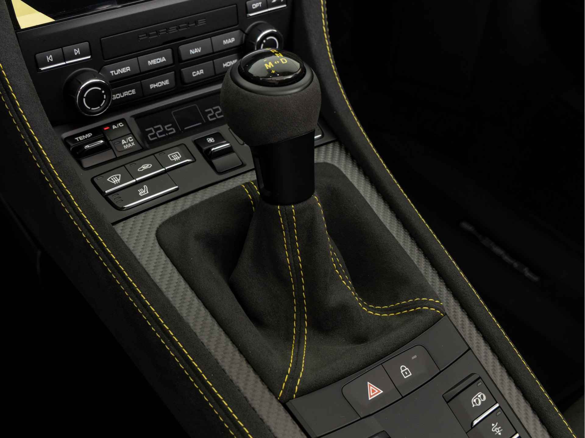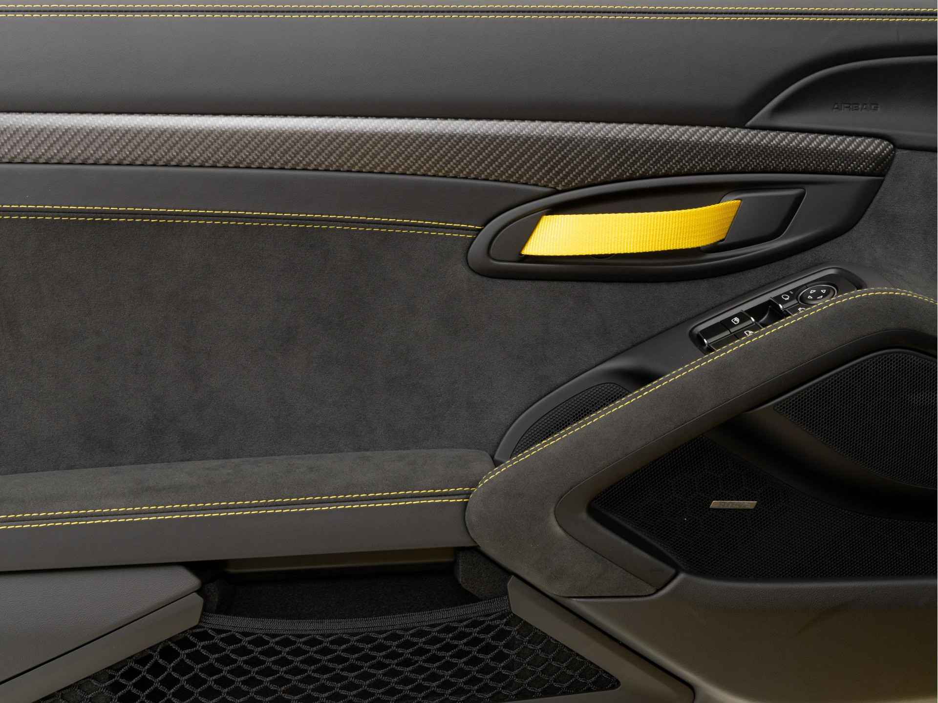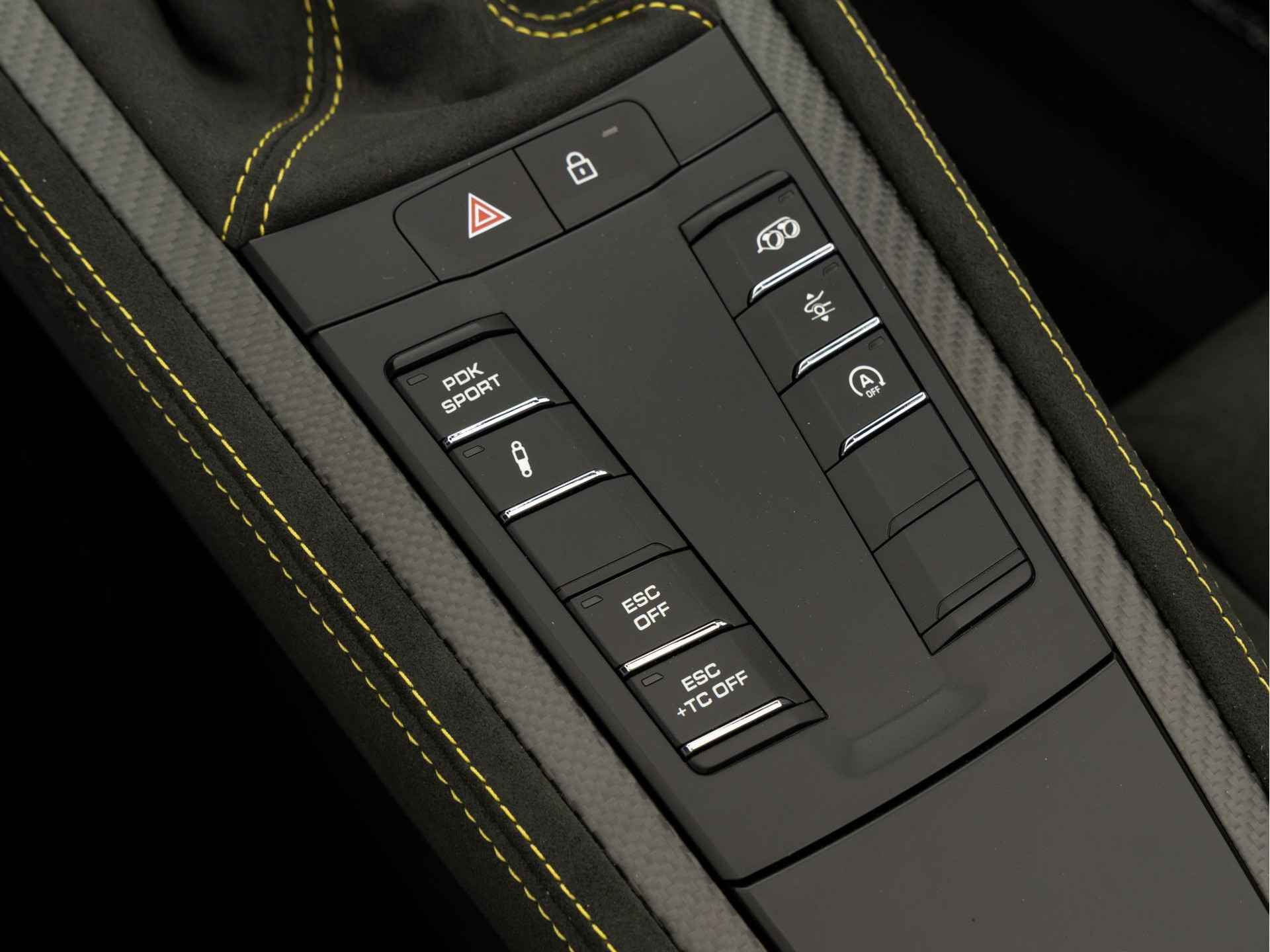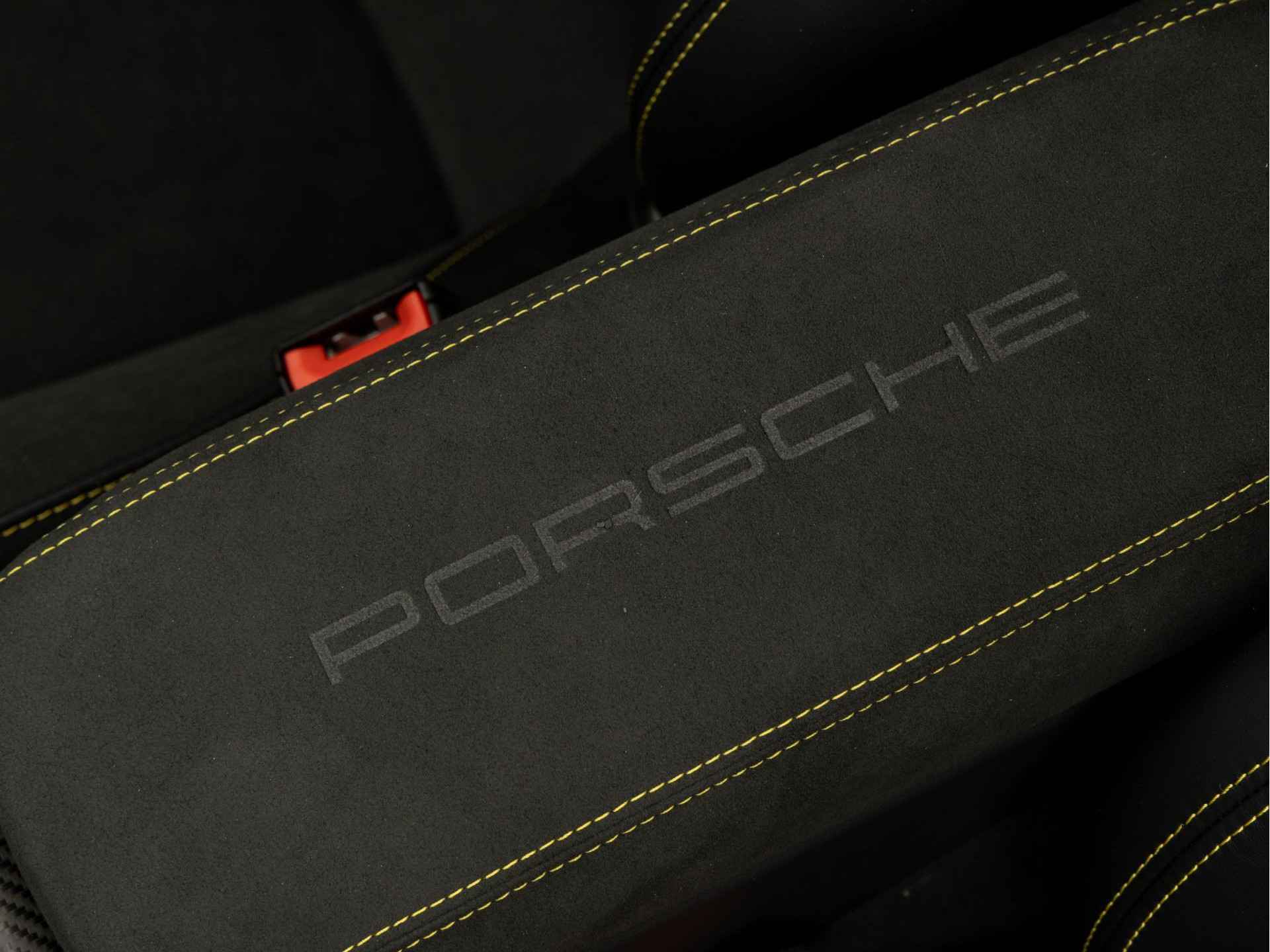 - Deksel middenconsole in Race-Tex met 'PORSCHE' logo