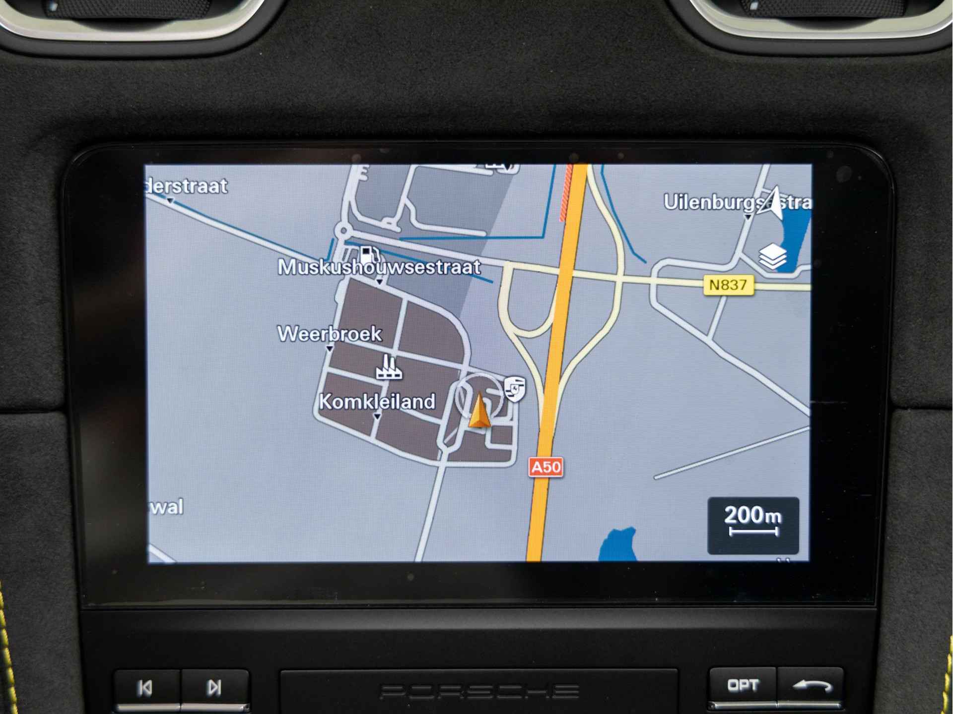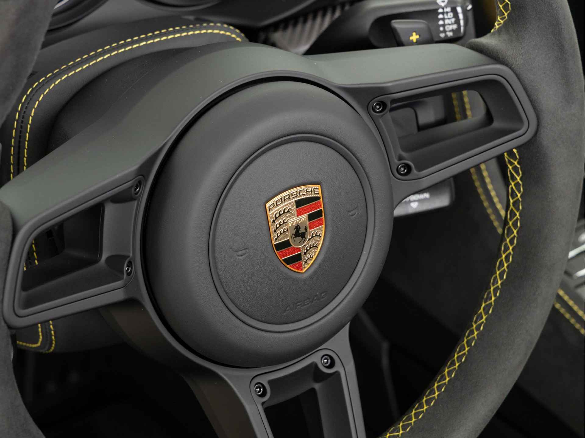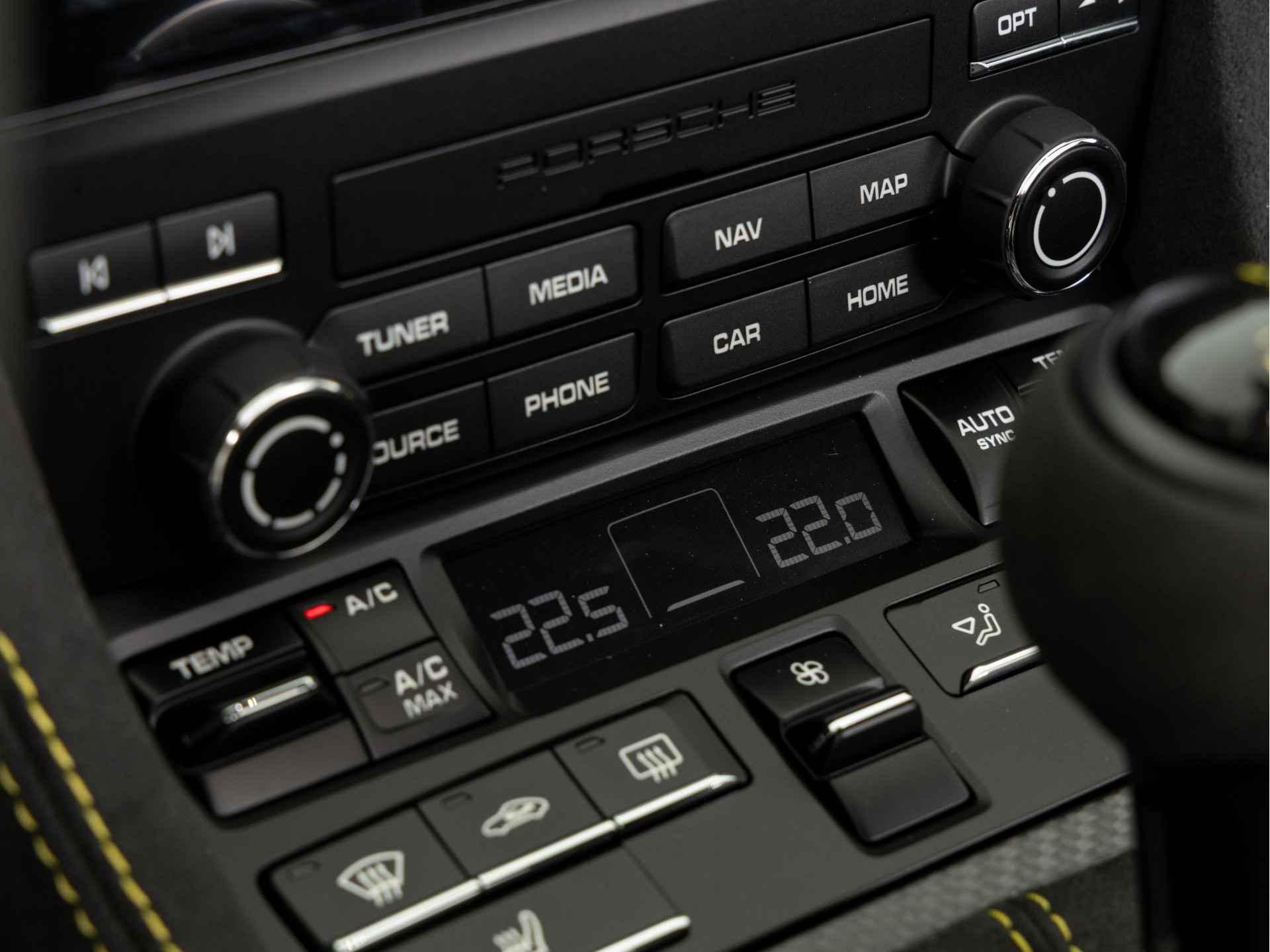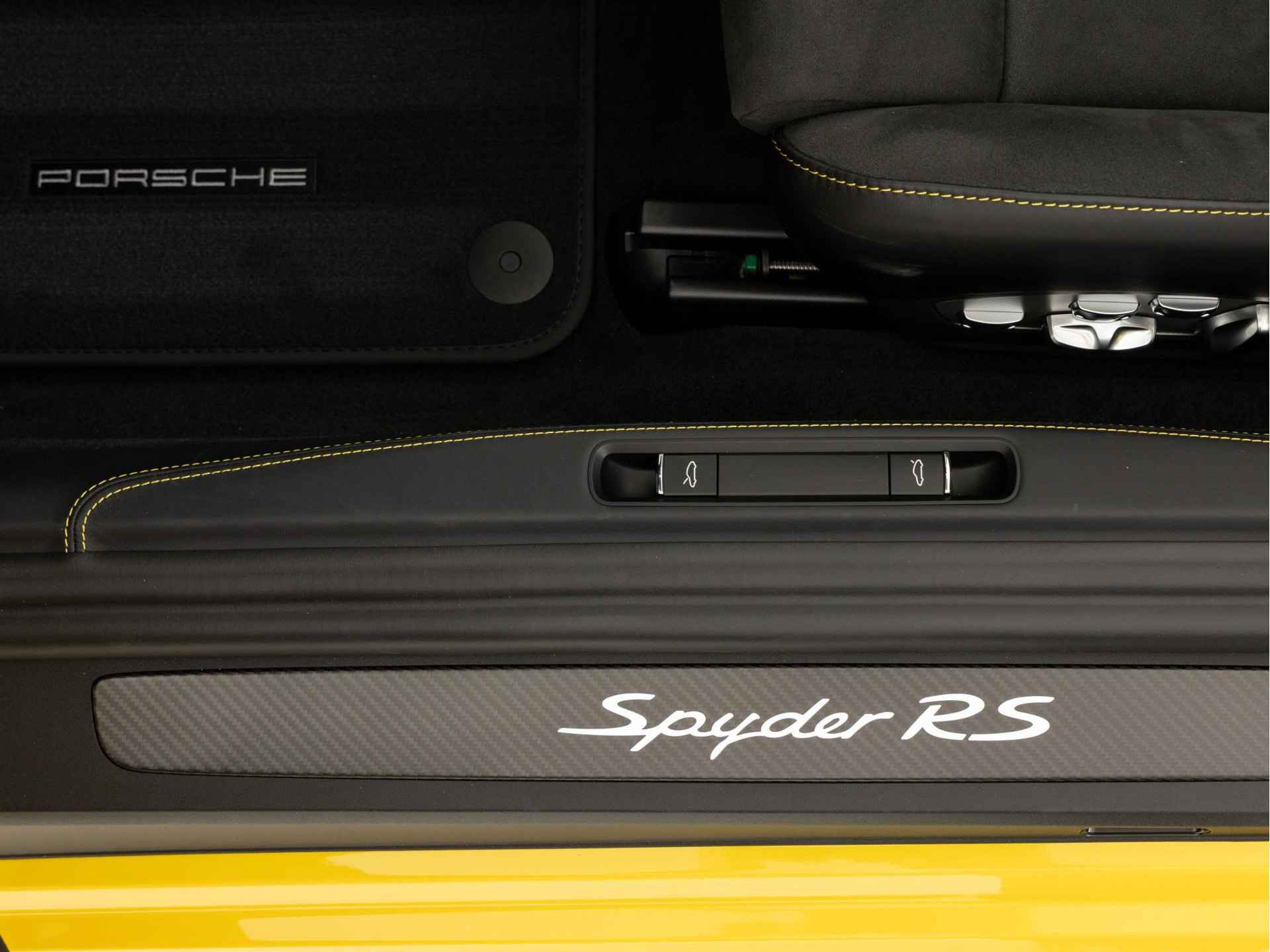 - Deksel middenconsole in Race-Tex met 'PORSCHE' logo