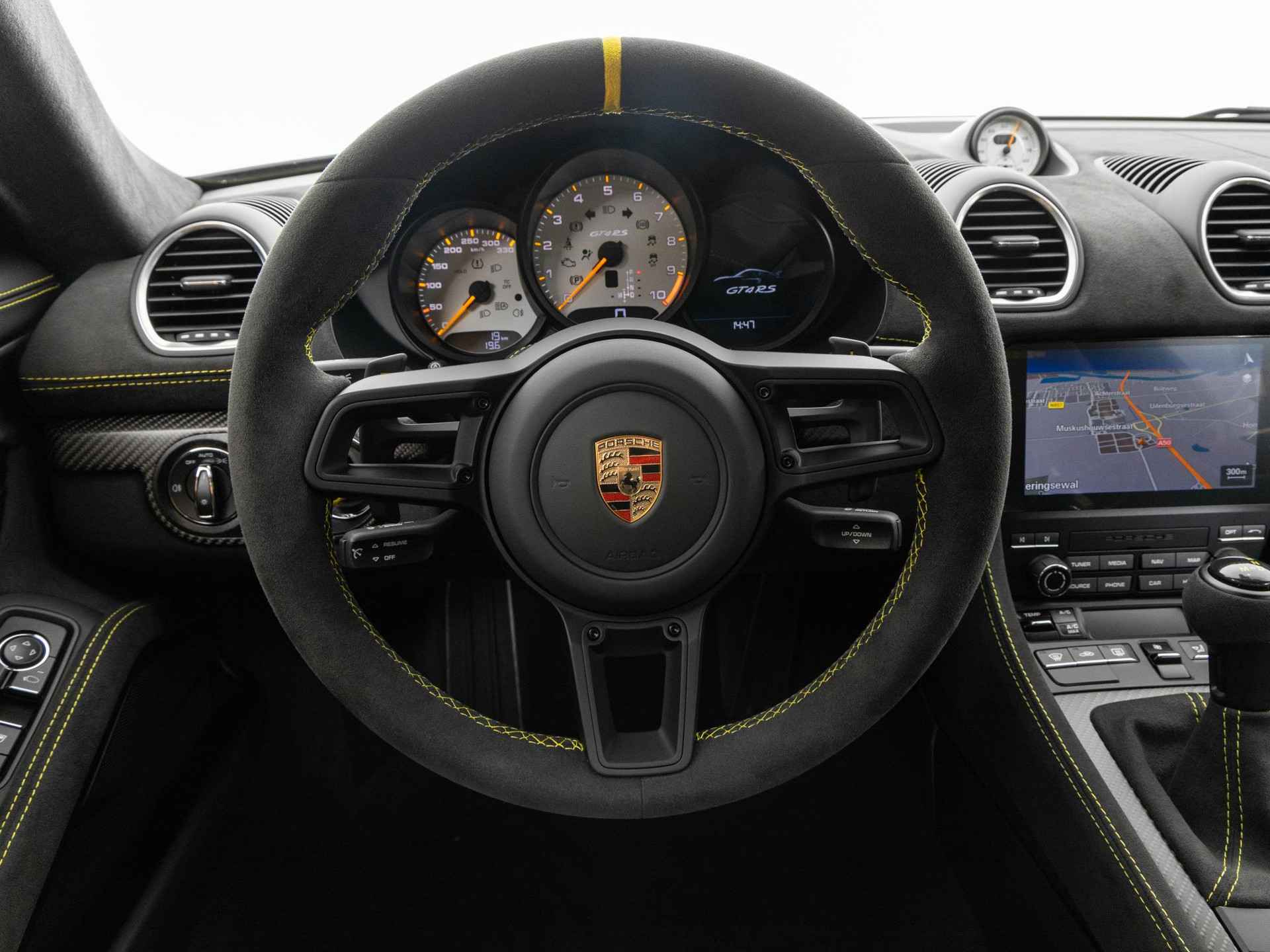 Deze Porsche 718 Cayman GT4 RS in de kleur naar keuze Brewster Green is nog nieuw en ongeregistreerd. De Porsche onderscheidt zich onder andere door unieke opties, zoals; het Clubsport Pakket, Eindafwerking dashboard leder/Race-Tex, Portierbekleding leder/Race-Tex en het Sierpakket interieur met sierstiksels en borduursel in contrasterende kleur. Uiteraard is dit exemplaar nog verder te verfraaien door hoogwaardige accessoires van Porsche Tequipement.