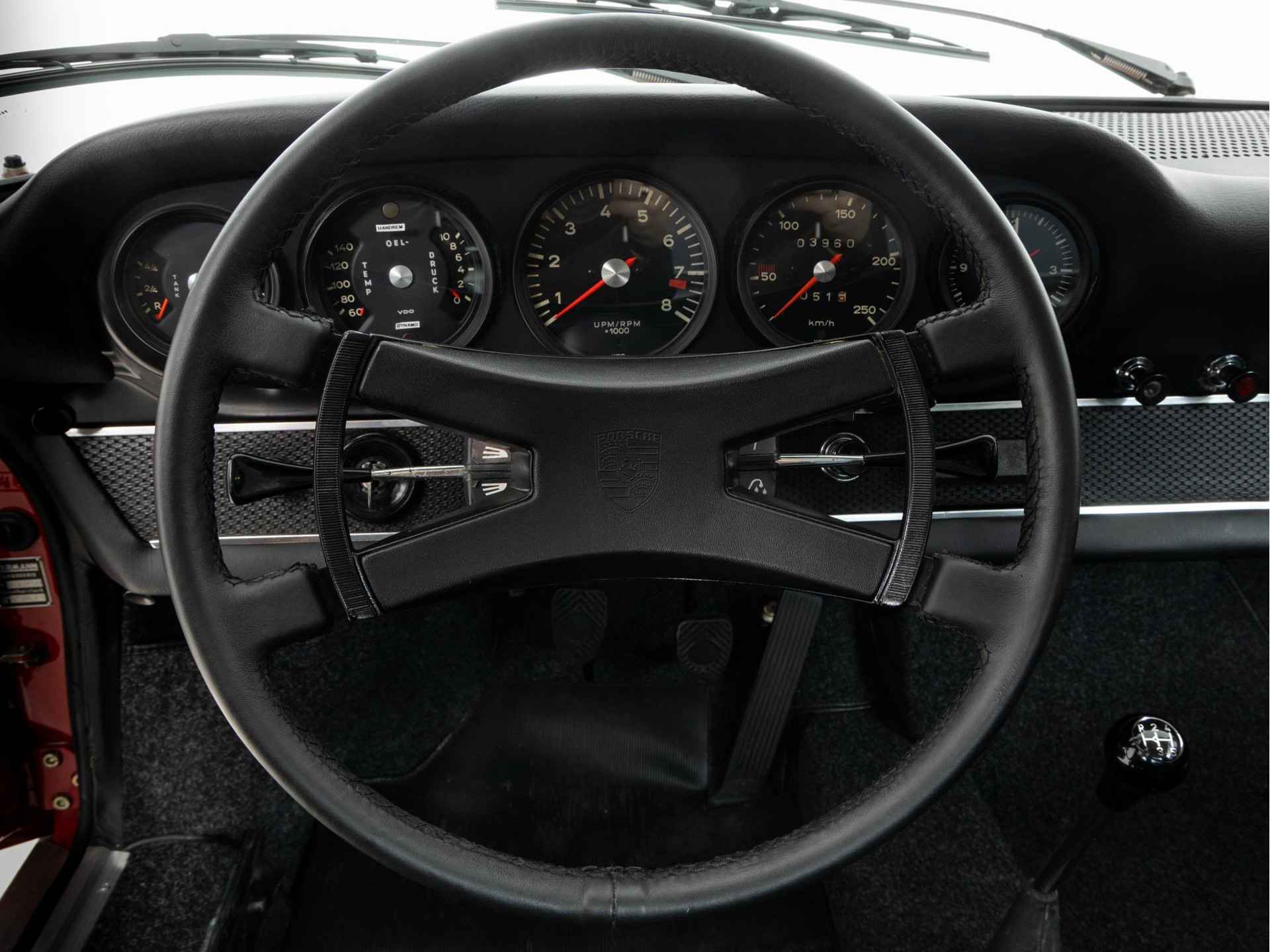 New, this 911 was delivered in Switzerland. This 911 has passed the time there very well, as evidenced by the restoration report from over 10 years ago now. The basis was an almost completely rust-free body. The body was completely stripped and all layers of paint were removed both on the inside and outside. Subsequently, the body underwent a high-level restoration and the Porsche was completely rebuilt whereby it was fully restored both optically and technically.