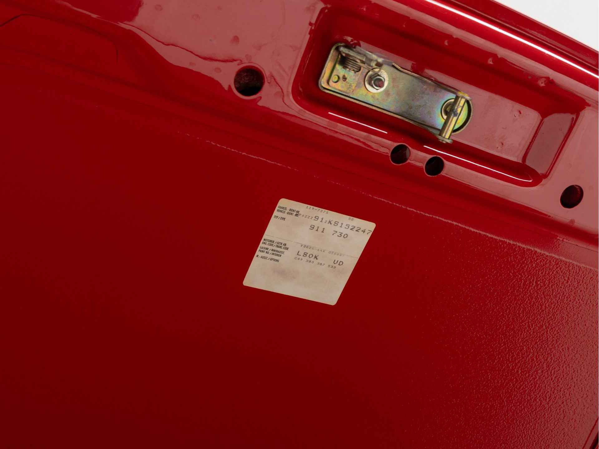 Uiteraard heeft de Speedster ook matching numbers en zijn de originele onderhoudsboekjes aanwezig in foudraal met instructieboekje en separate Speedster bijlage. De toolkit, met krik het reservewiel en de plastic zak met daarin ook de aparte Speedster-tonneau is in nieuwstaat aanwezig. Zelf een originele lakstift welke nieuw bij de Porsche is geleverd is er nog bij.
