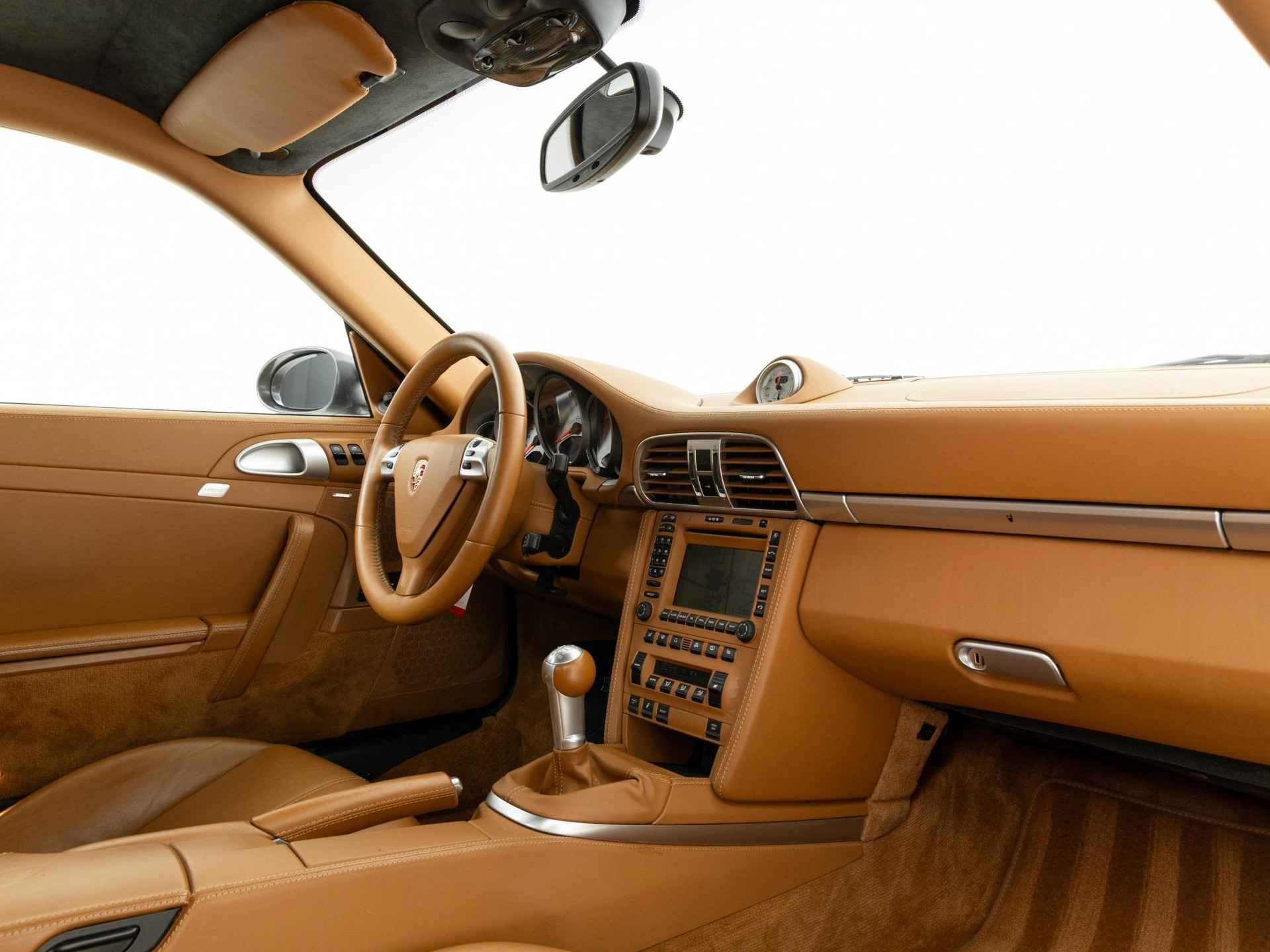 De Porsche 997.1 Turbo Coupé is een iconische sportwagen die prestaties en luxe perfect combineert. Dit exemplaar is uitgevoerd met een natuurleder bruin interieur en een handgeschakelde transmissie, wat zorgt voor een pure en authentieke rijbeleving.