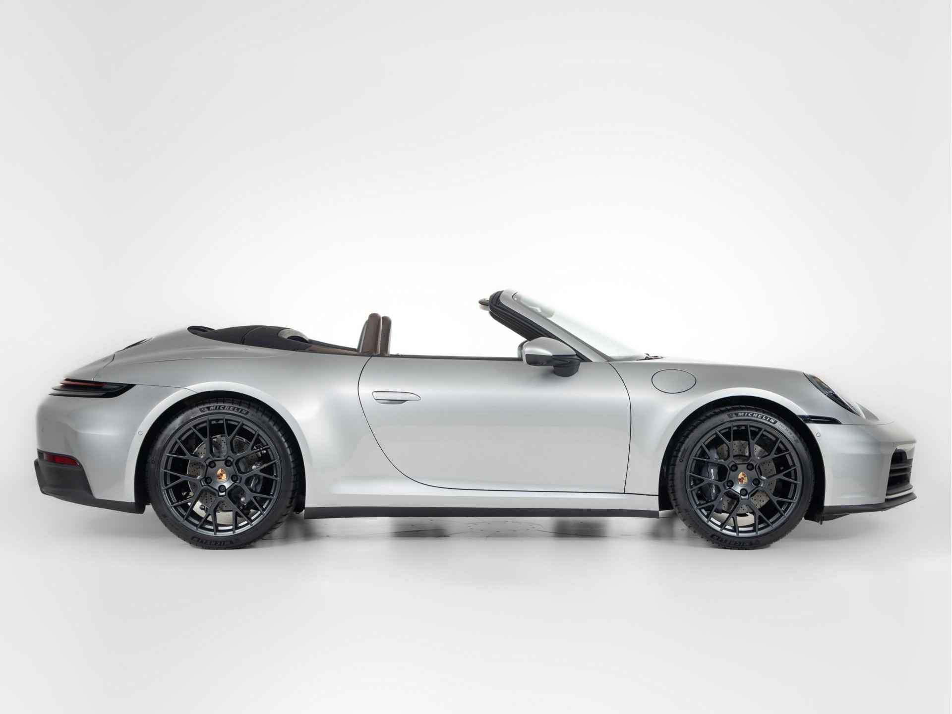 Deze Porsche 911 Carrera Cabriolet in de kleur GT-zilver metallic is nog nieuw en ongebruikt. De Porsche onderscheidt zich onder andere door unieke opties, zoals; Adaptive cruise control, BOSE® Surround Sound System, Sportstoelen Plus, elektrisch 4 voudig en Surround View with Active Parking Support. Uiteraard is dit exemplaar nog verder te verfraaien door hoogwaardige accessoires van Porsche Tequipement.