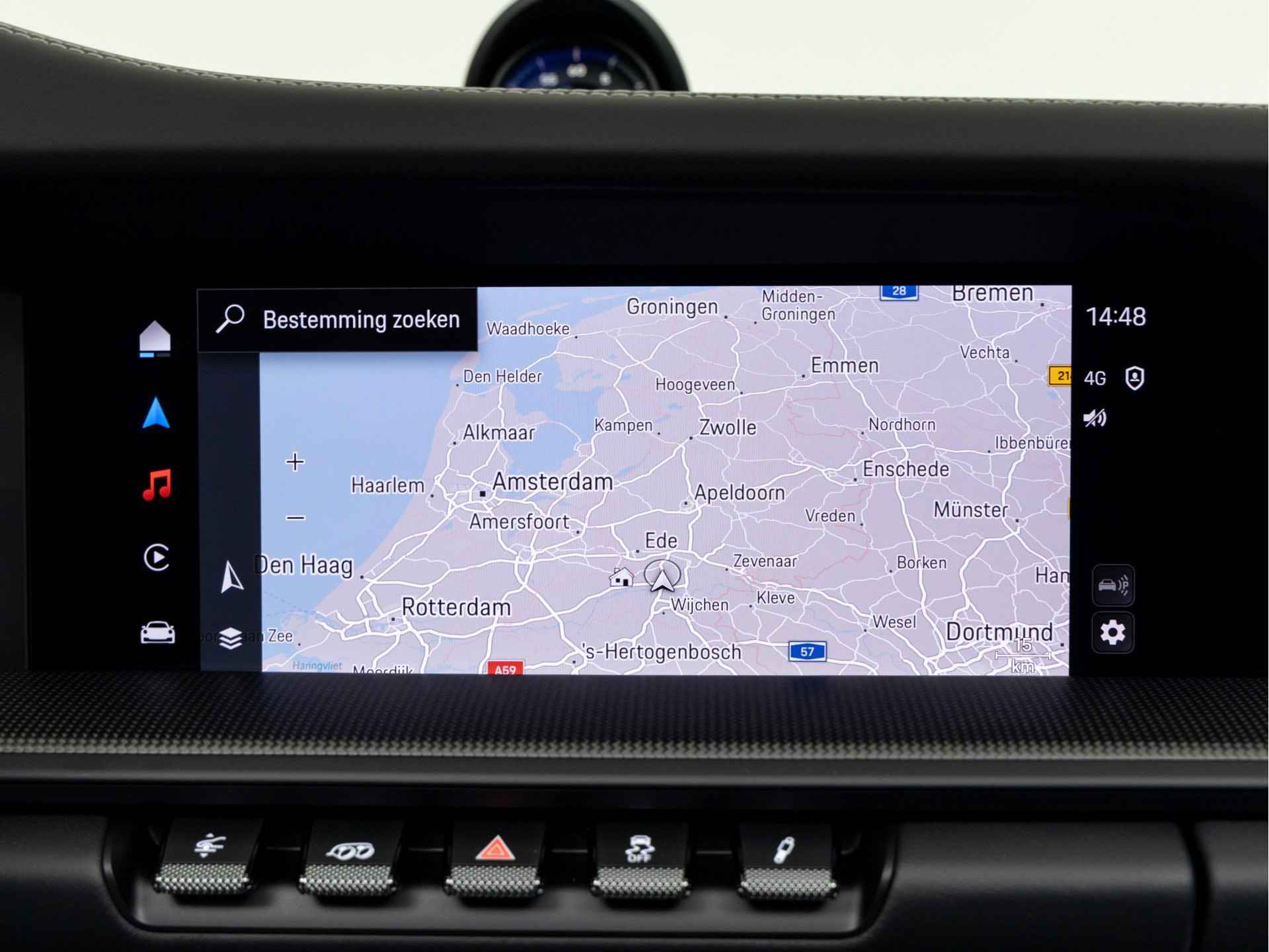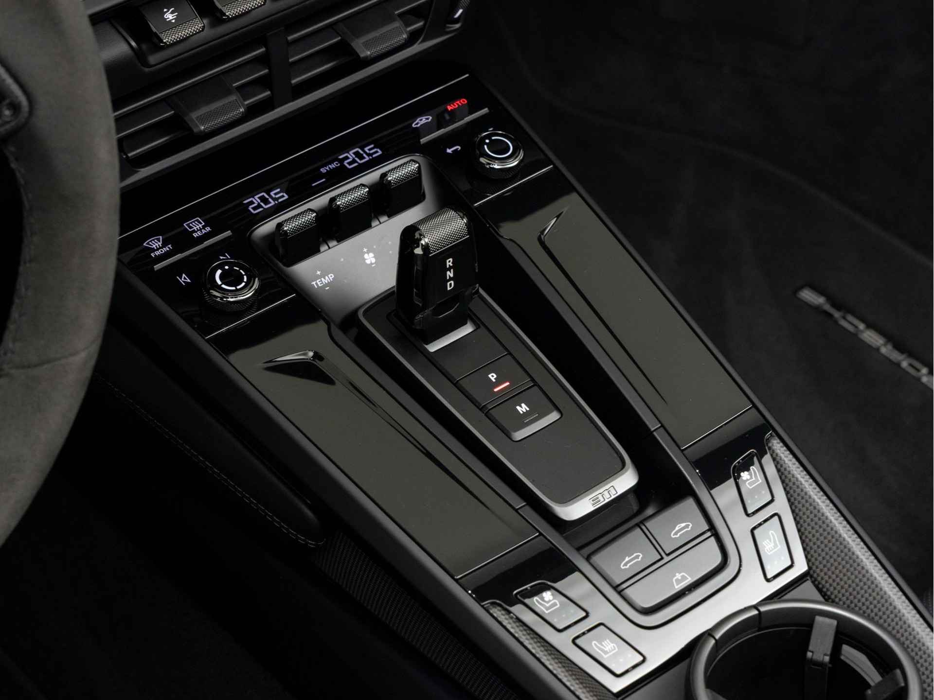 - Race-Tex armsteun middenconsole met 'PORSCHE' logo