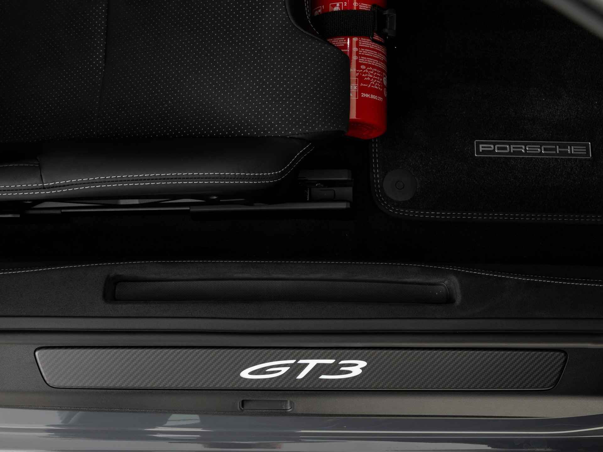 Deze Porsche 911 GT3 in de kleur Slate Grey Neo is nog nieuw en ongeregistreerd. De Porsche onderscheidt zich onder andere door unieke opties, zoals; het Weissach Pakket, Luchtinlaatrooster vooraan met Weissach-pakketlogo, Lichtgewicht sportkuipstoelen (inklapbaar) en Porsche Ceramic Composite Brake (PCCB). Uiteraard is dit exemplaar nog verder te verfraaien door hoogwaardige accessoires van Porsche Tequipement.