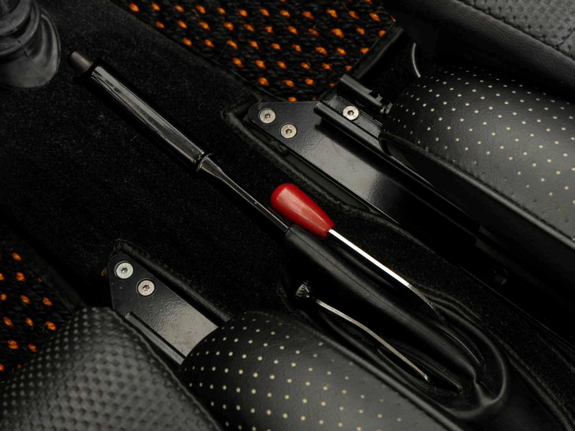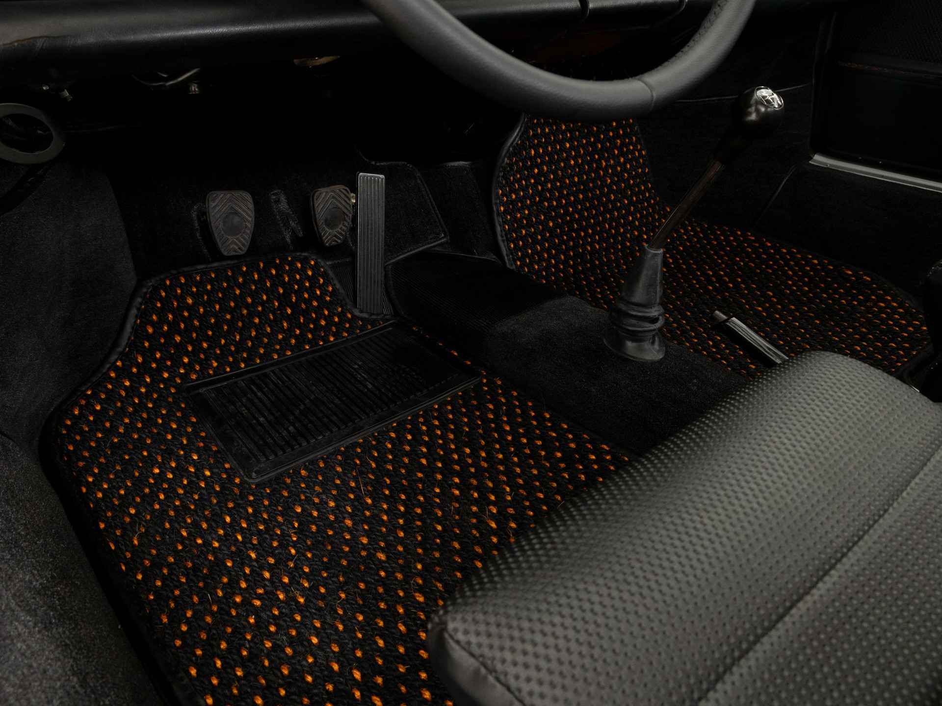 De originele stoelen, het stuurwiel en de gereedschapsset worden bij de auto geleverd.