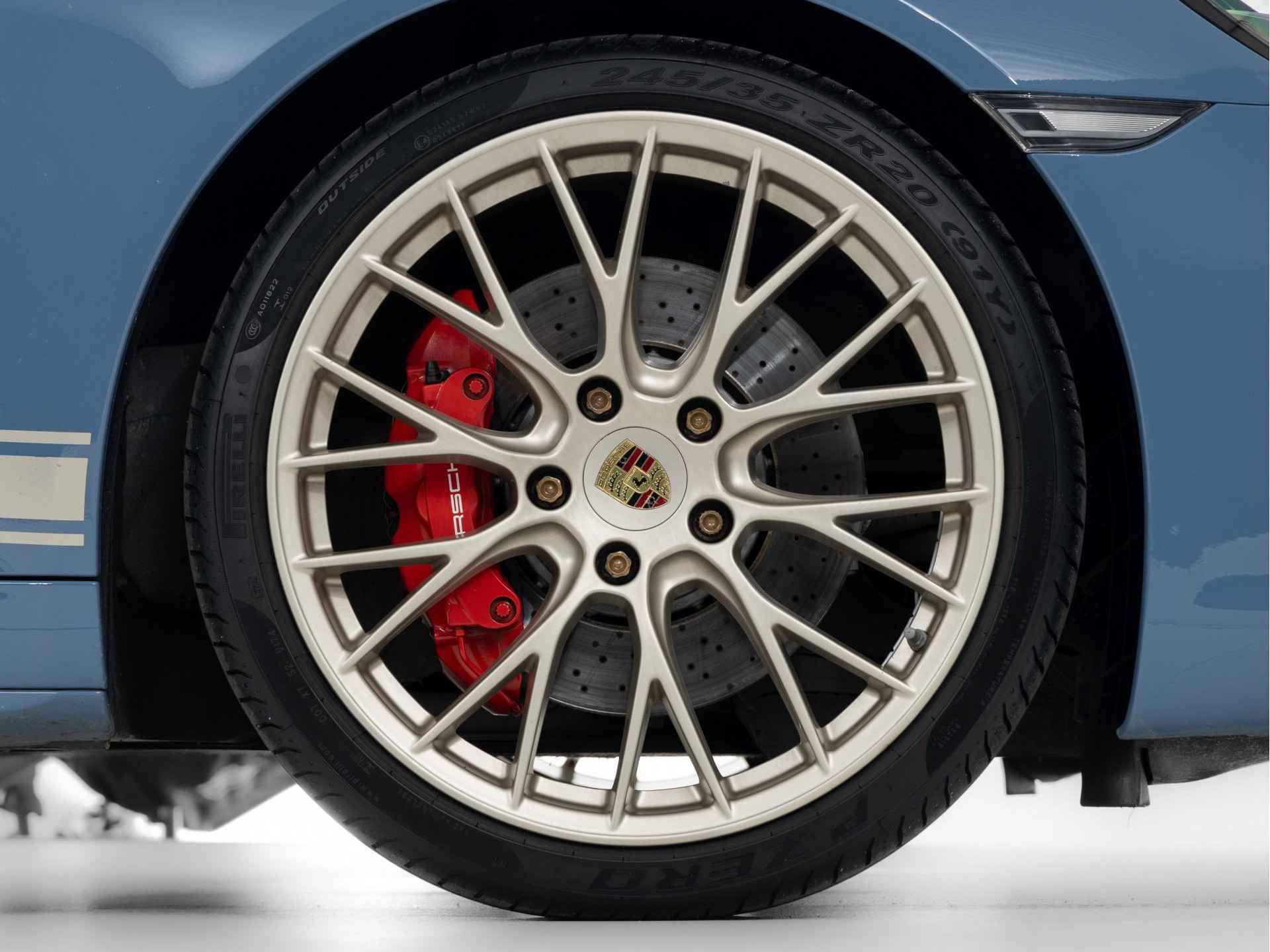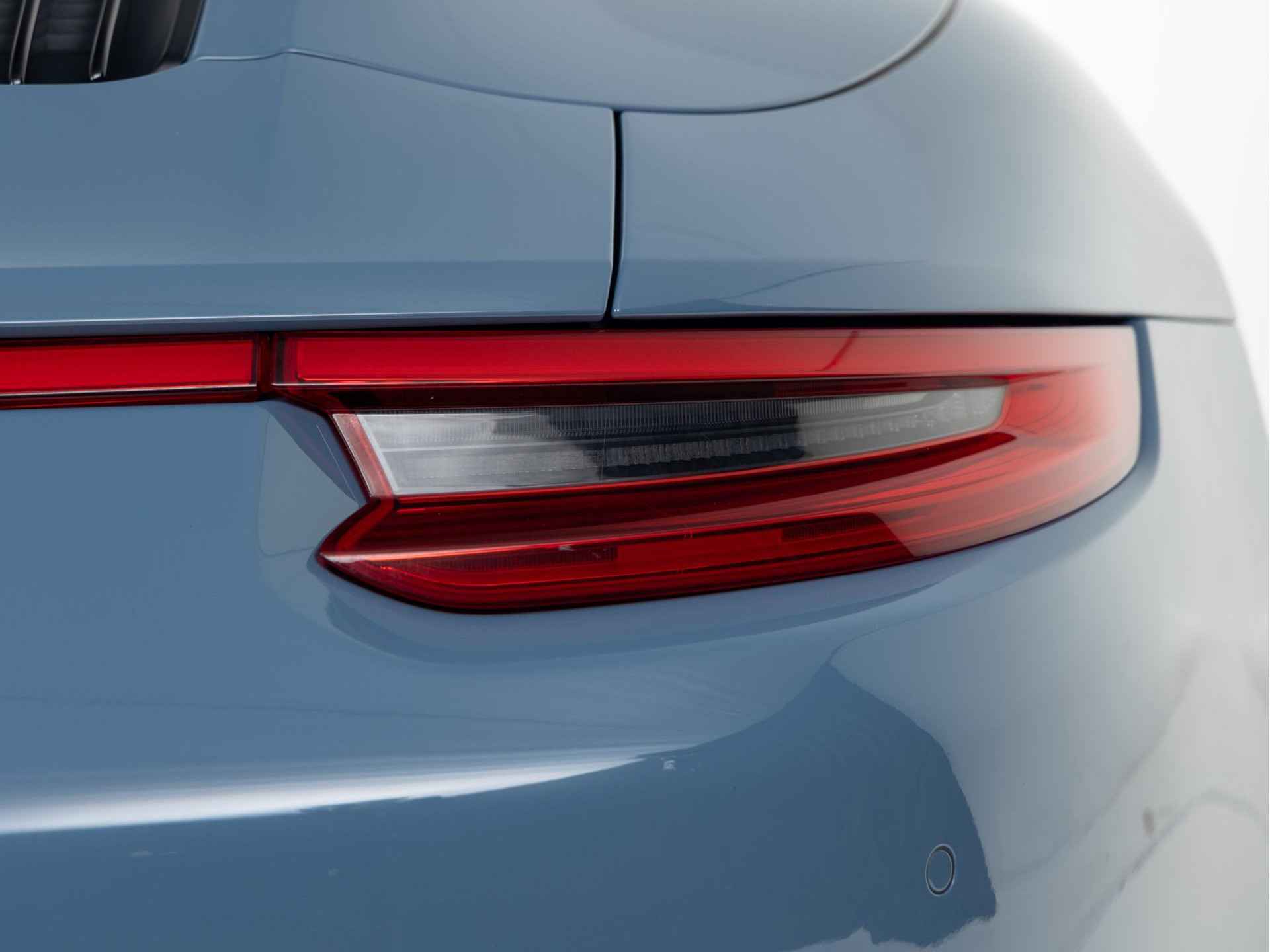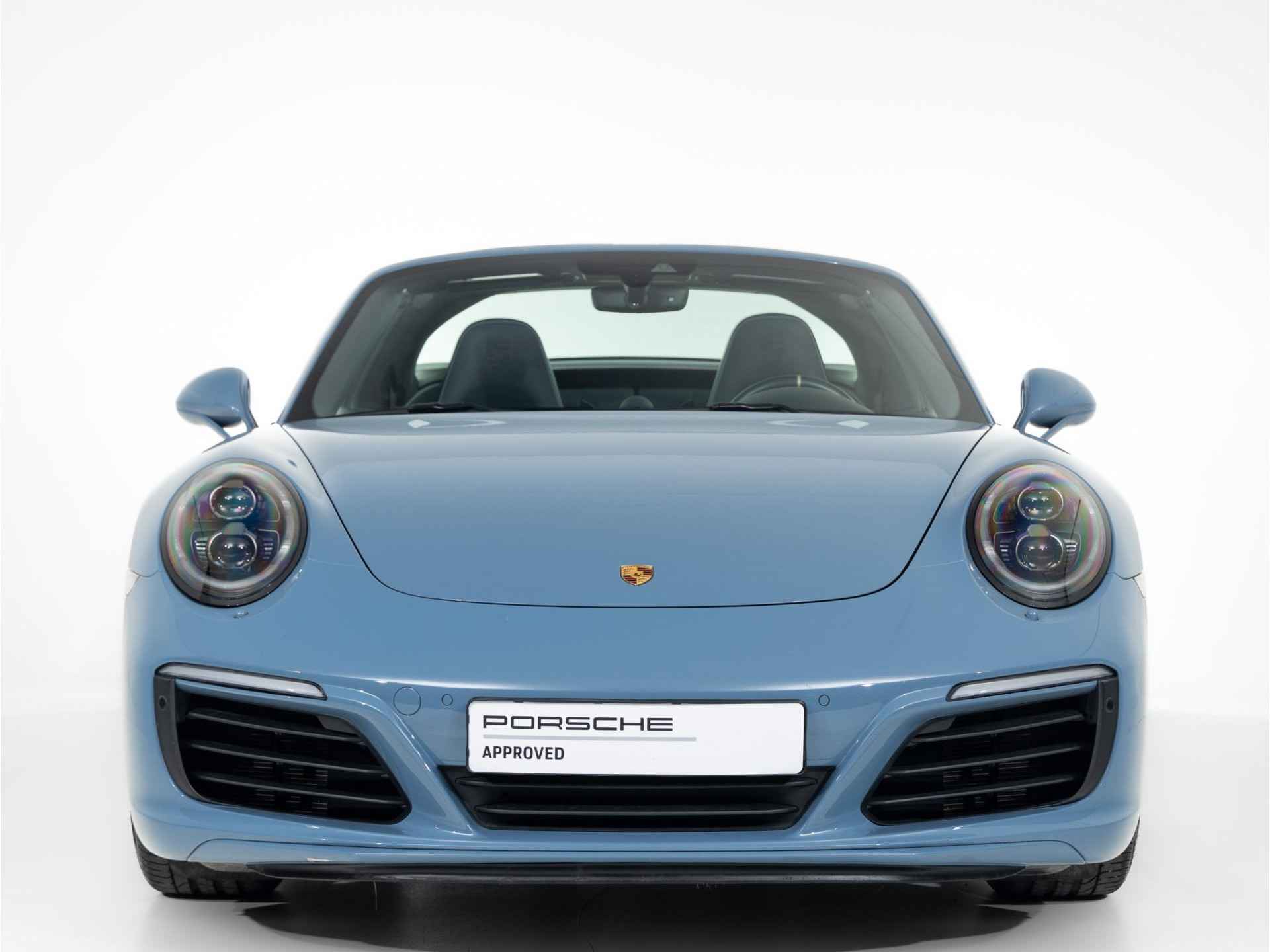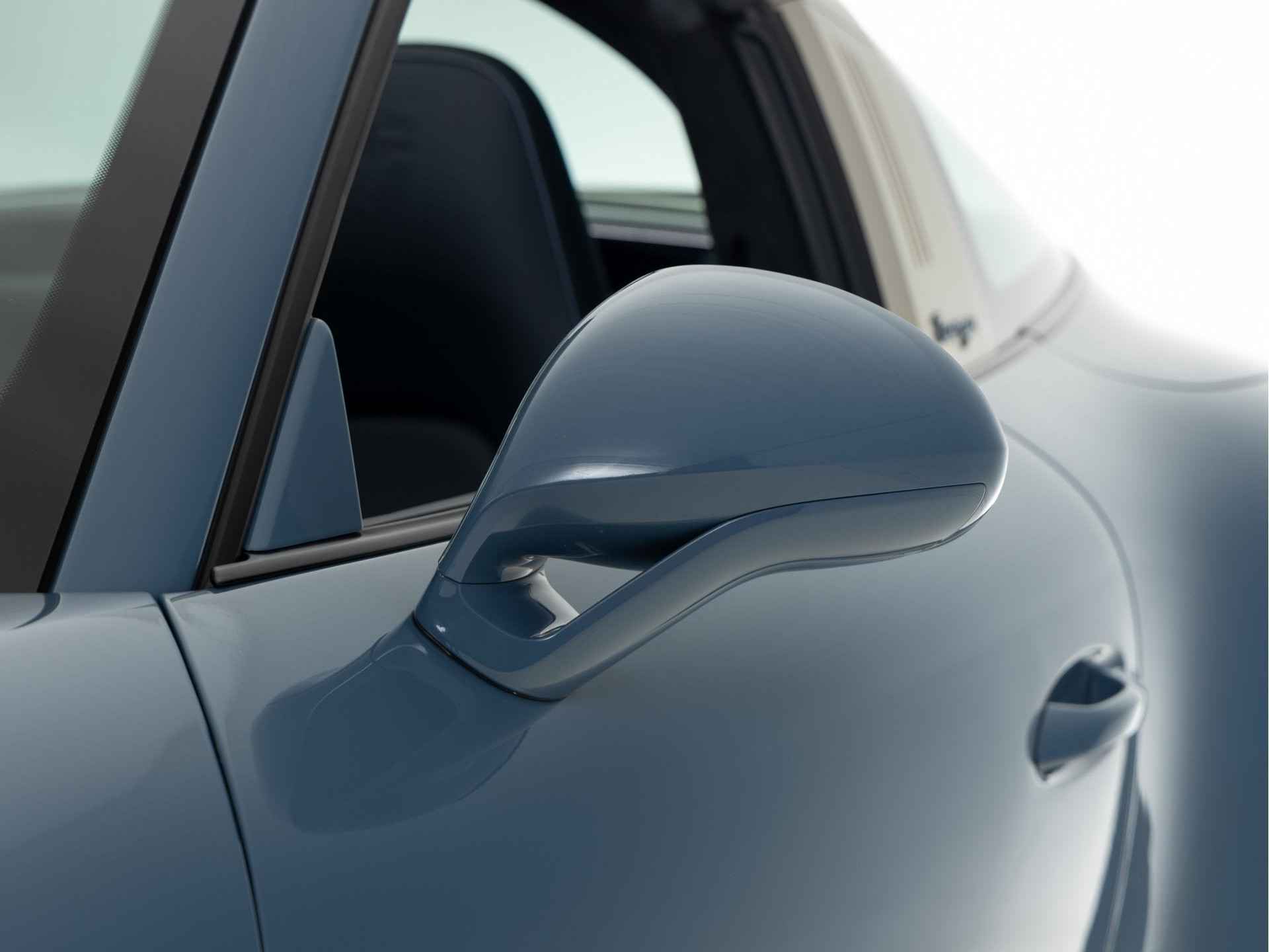 De unieke kleur Etnablauw van de Porsche 911 Targa 4S Exclusive Design is ook terug te vinden op de voorspoiler, het onderste gedeelte van de achterbumper, de typeaanduiding achter, de afdekkapjes van de koplampsproeiers en het Targa-logo op de kenmerkende beugel. De Targa-beugel zelf, de 20 inch RS Spyder-wielen en de Porsche-logo’s op de flanken van de Targa zijn uitgevoerd in zijdeglans witgoud metallic. De limited edition is standaard uitgevoerd met zwart getinte led-koplampen inclusief Porsche Dynamic Light System Plus (PDLS Plus)