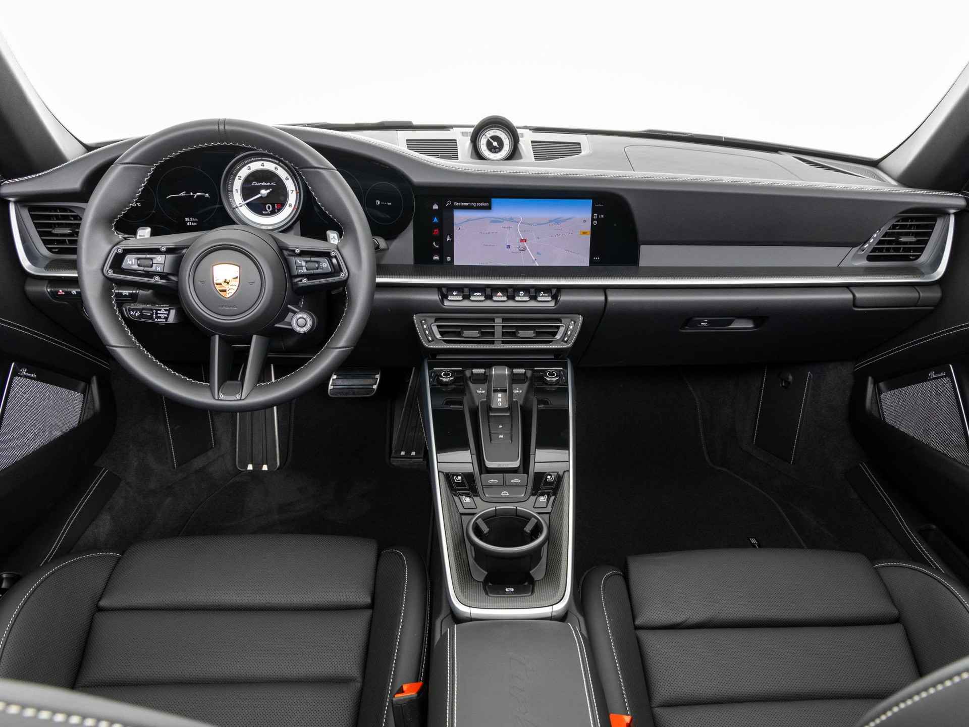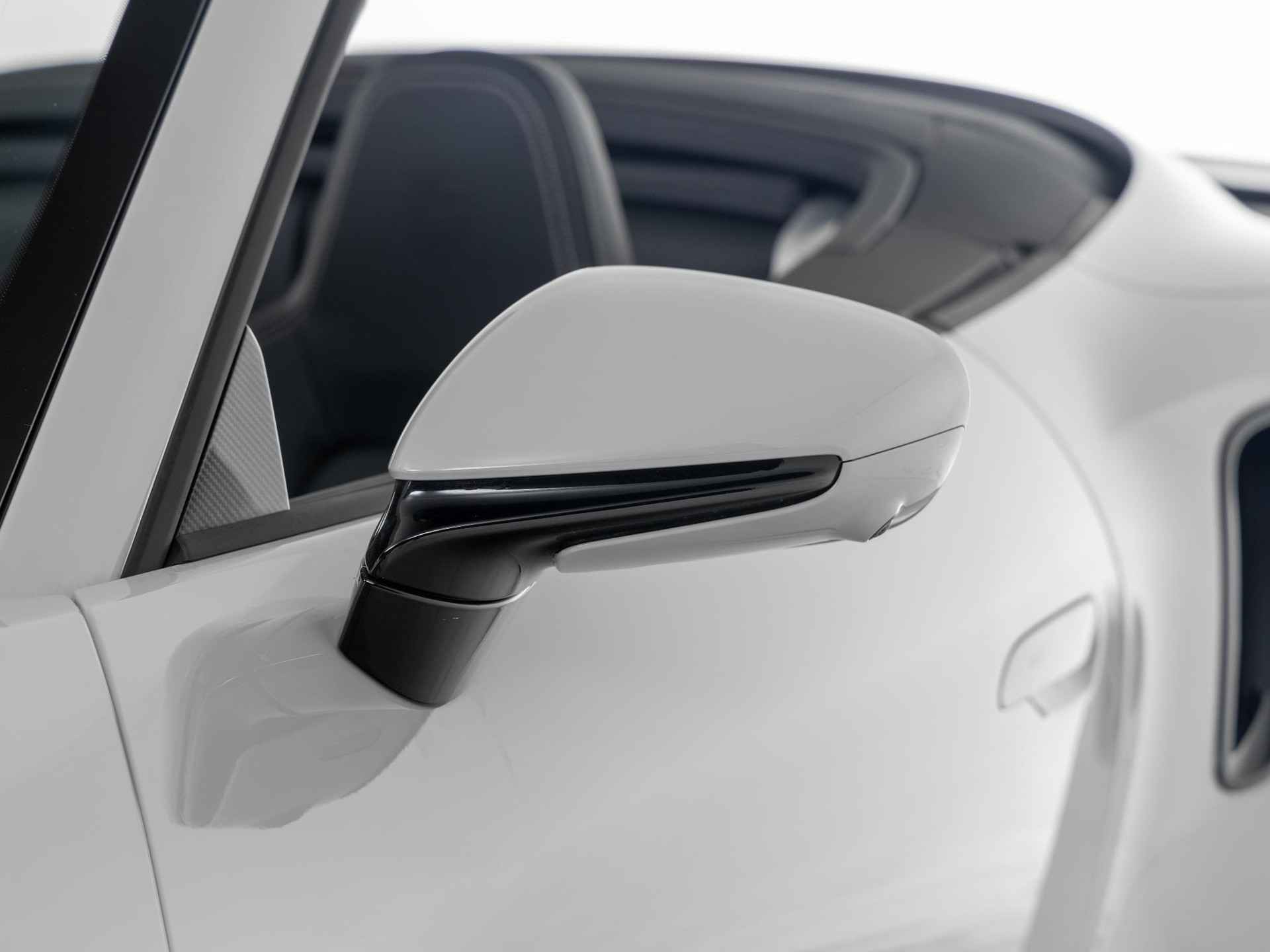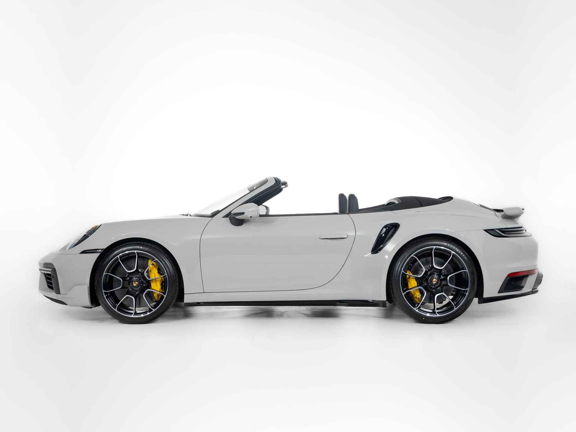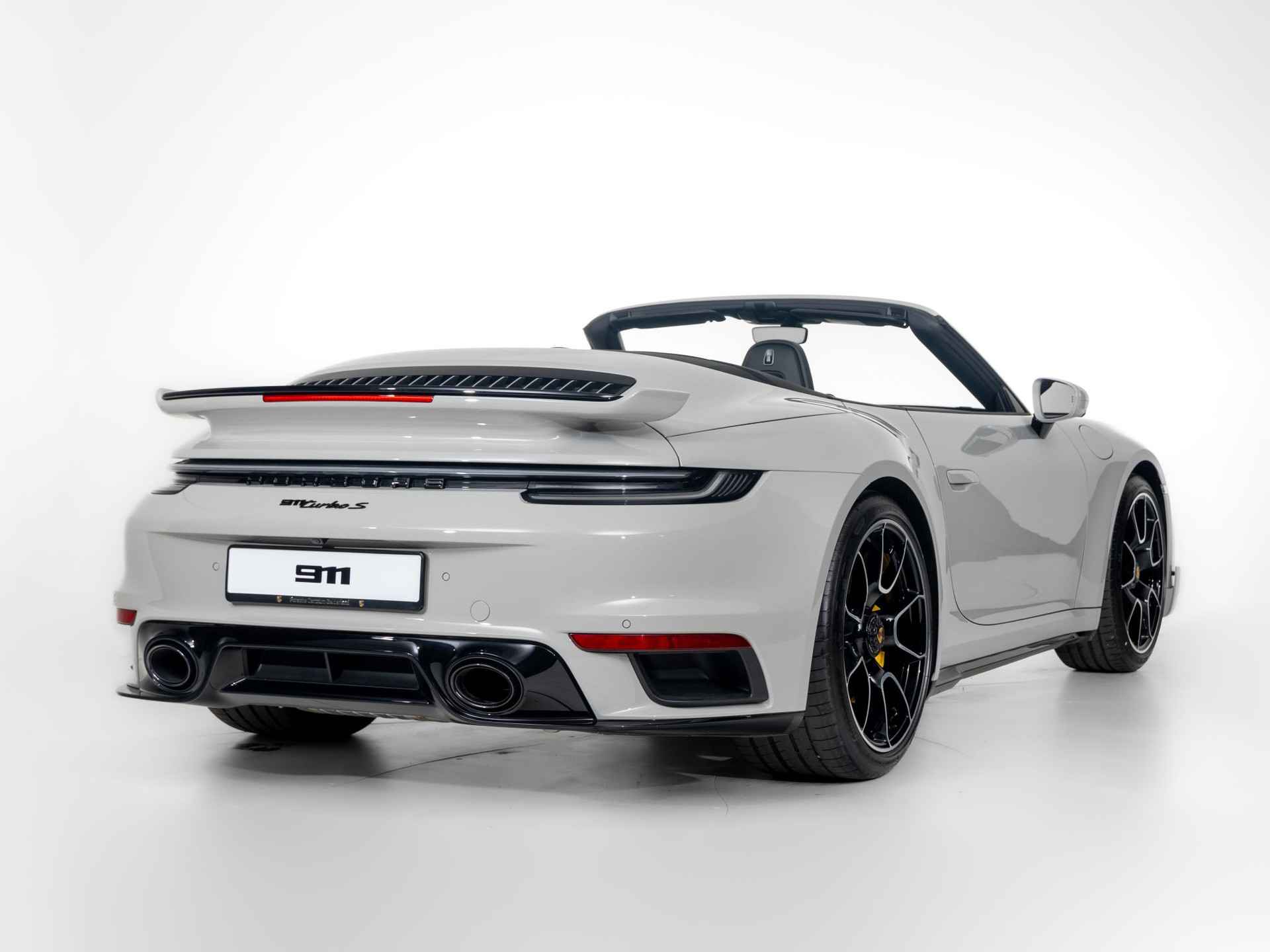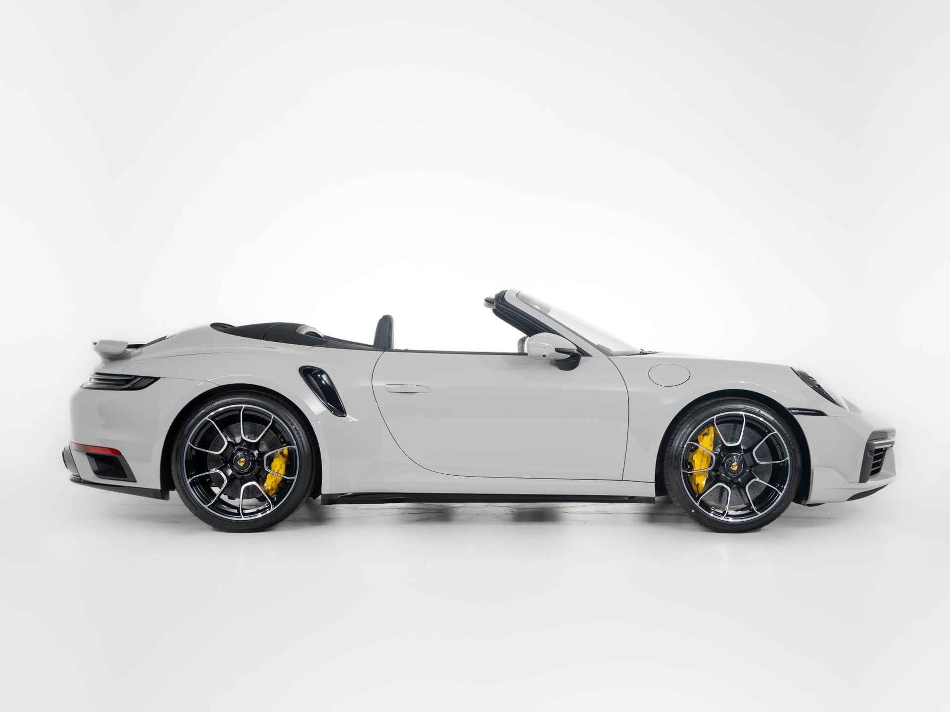 Deze Porsche 911 Turbo S Cabriolet in de kleur Krijt heeft slechts 10.189 kilometers gereden. De Porsche onderscheidt zich onder andere door unieke opties, zoals; SportDesign-pakket 911 Turbo gespoten in zwart hoogglans, Sportstoel Plus rugleuningen leder met decoratieve inleg leder, Lederen luchtroosters met lederen lamellen en het Interieurpakket met decoratieve stiksels in afwijkende kleur. Uiteraard is dit exemplaar nog verder te verfraaien door hoogwaardige accessoires van Porsche Tequipement.