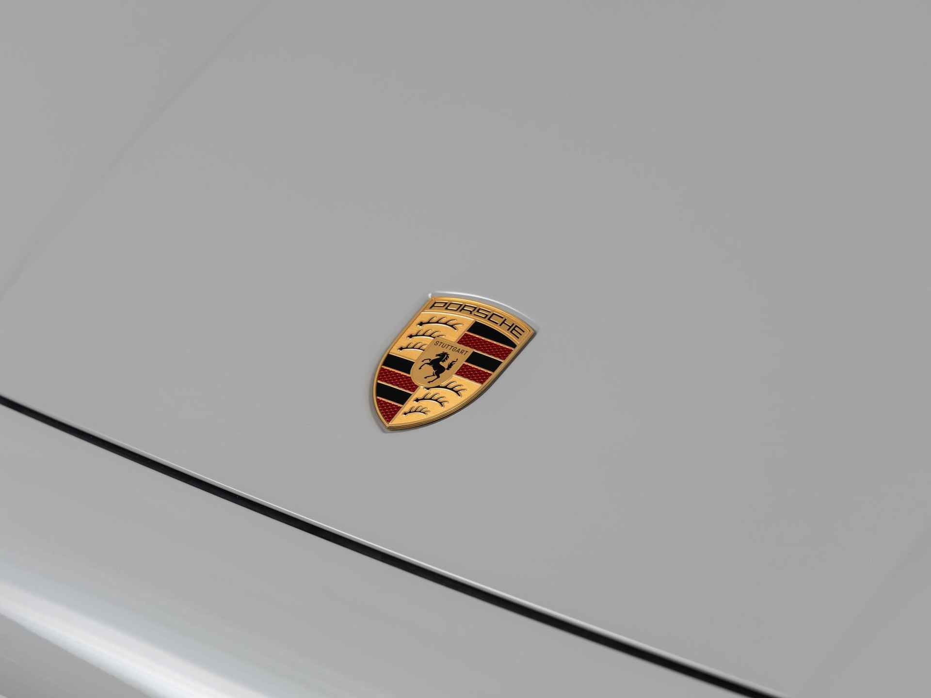 - Porsche Crest in reliëf op armsteun middenconsole (6E2)