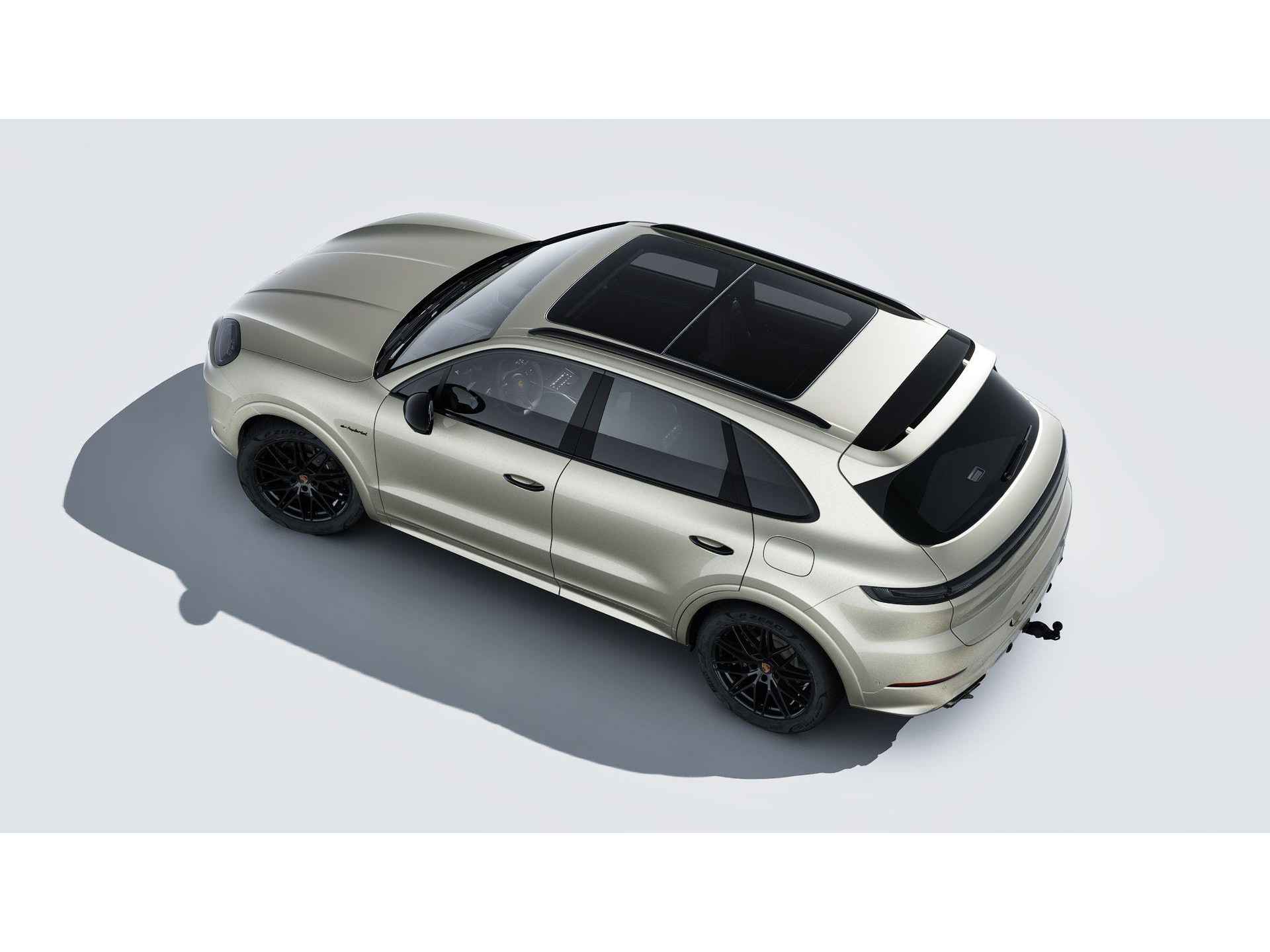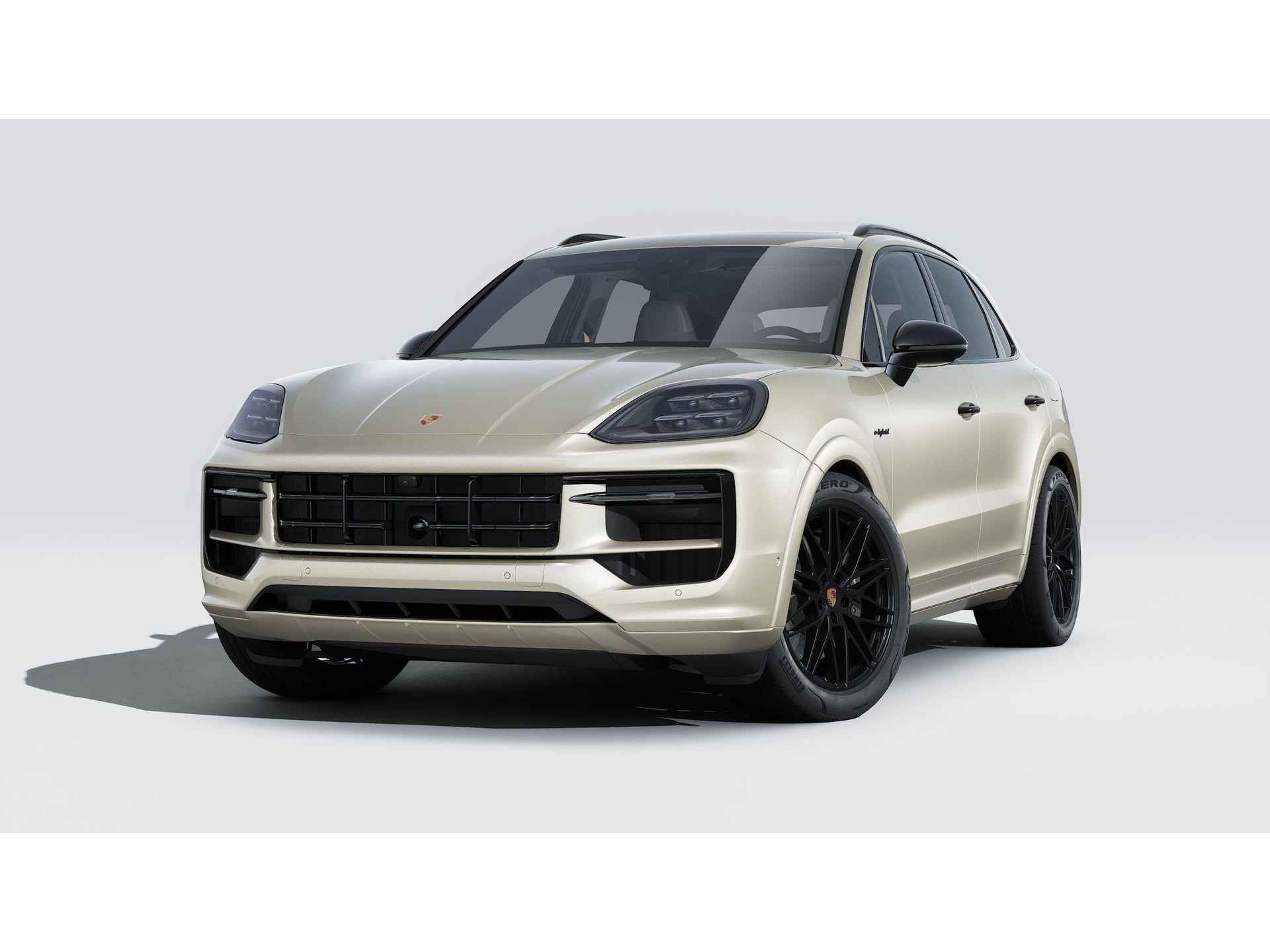 Deze Porsche Cayenne E-Hybrid Black Edition in de kleur Cashmere beige metallic is nog nieuw en ongeregistreerd. De Porsche onderscheidt zich onder andere door unieke opties, zoals; Sierstiksels in contrasterende kleur, Interieurpakket carbon, Wijzerplaat Sport Chrono en digitale toerenteller Mojavebeige en Portiergrepen hoogglans zwart gespoten. Uiteraard is dit exemplaar nog verder te verfraaien door hoogwaardige accessoires van Porsche Tequipement.