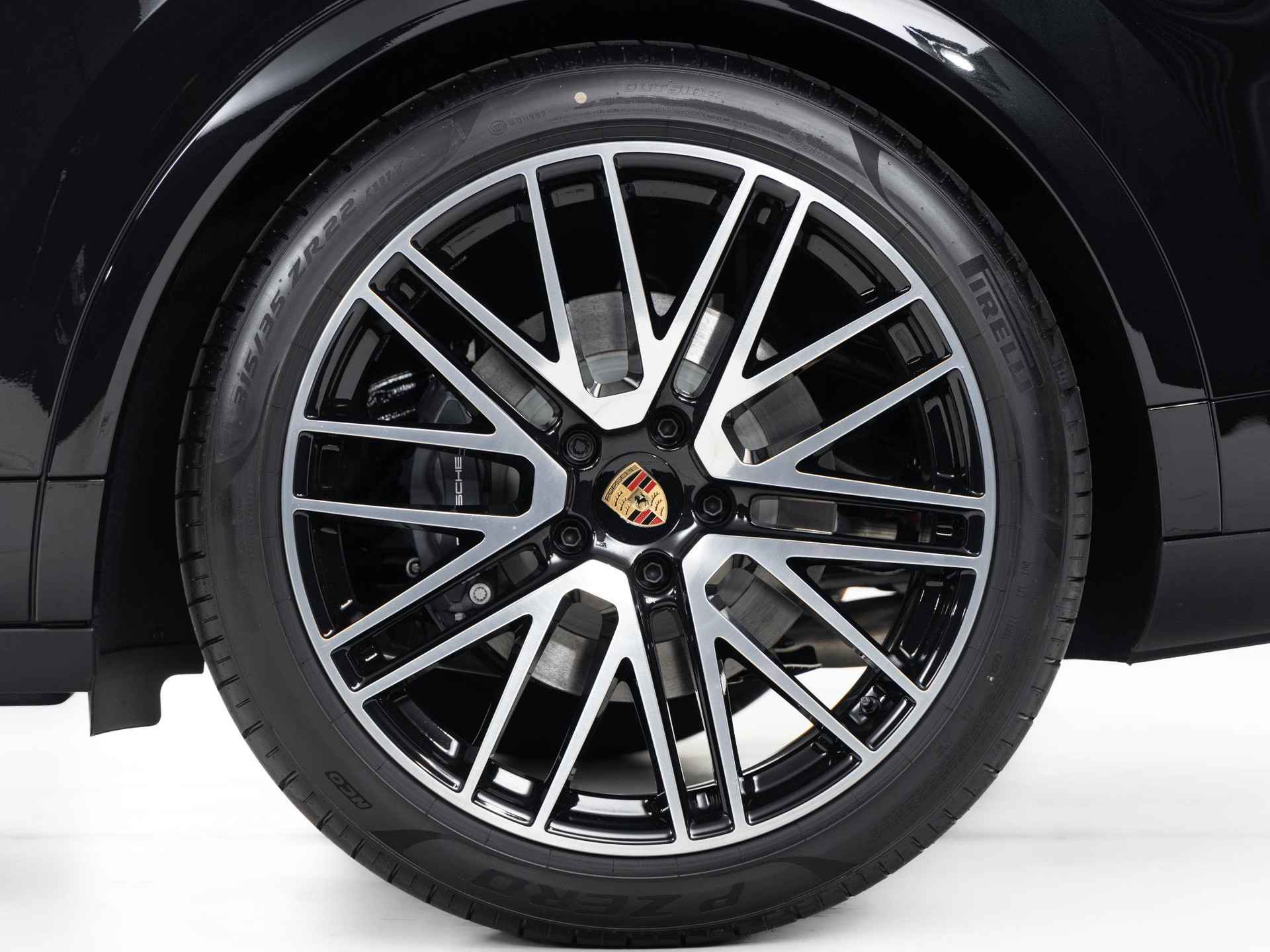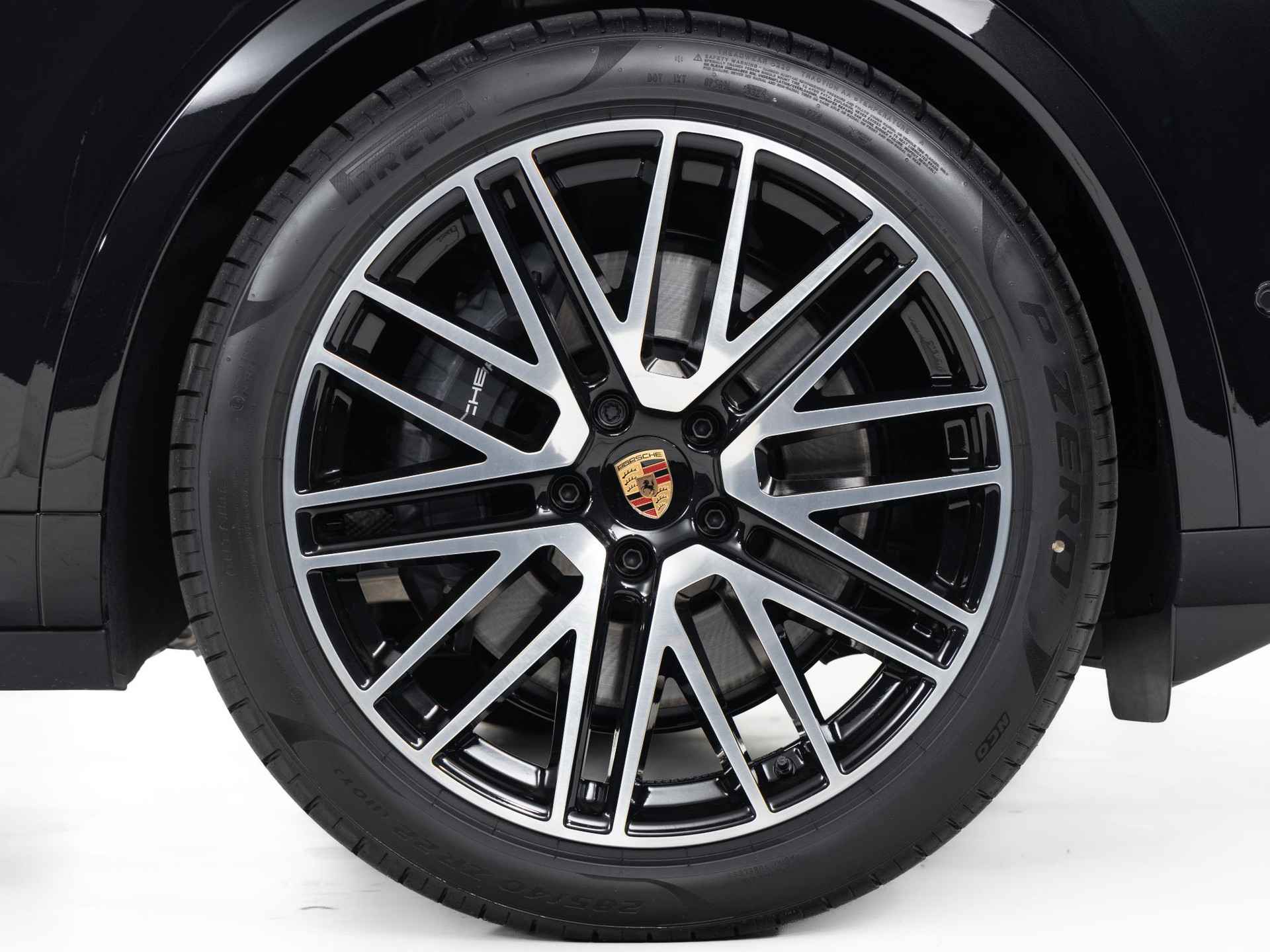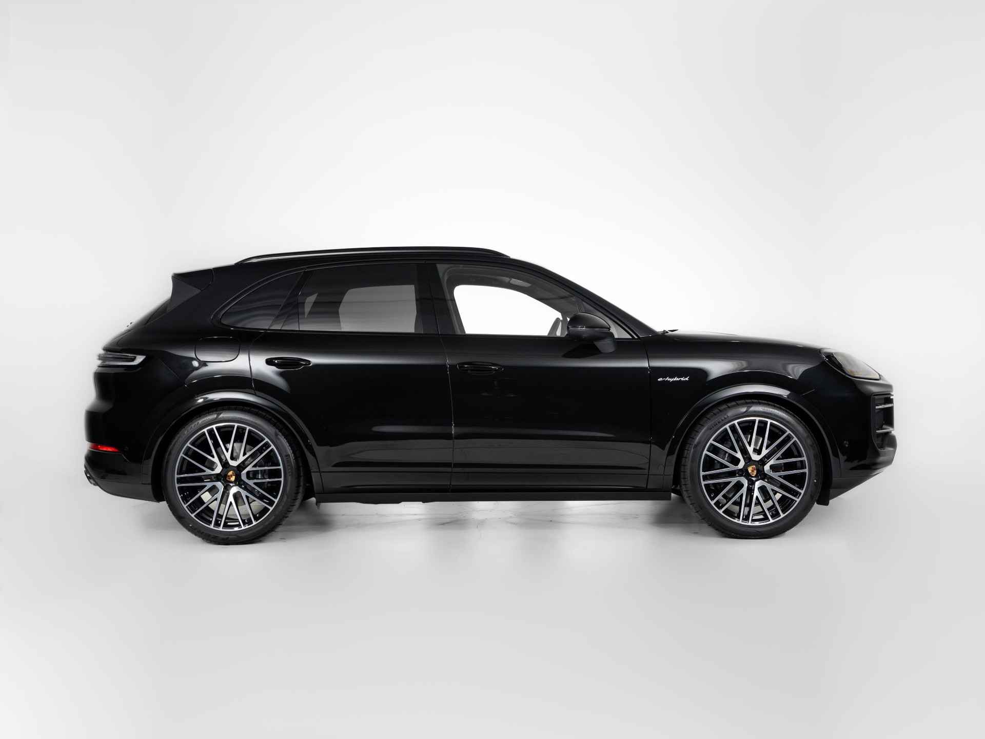 Deze Porsche Cayenne E-Hybrid in de kleur Chromite zwart metallic heeft slechts 25.833 kilometers gereden. De Porsche onderscheidt zich onder andere door unieke opties, zoals; 22-inch 911 Turbo Design wiel met wielkastverbreders in exterieurkleur, Achterasbesturing, Getinte HD-matrix led-koplampen en het Sportuitlaatsysteem donkerbrons. Uiteraard is dit exemplaar nog verder te verfraaien door hoogwaardige accessoires van Porsche Tequipement.