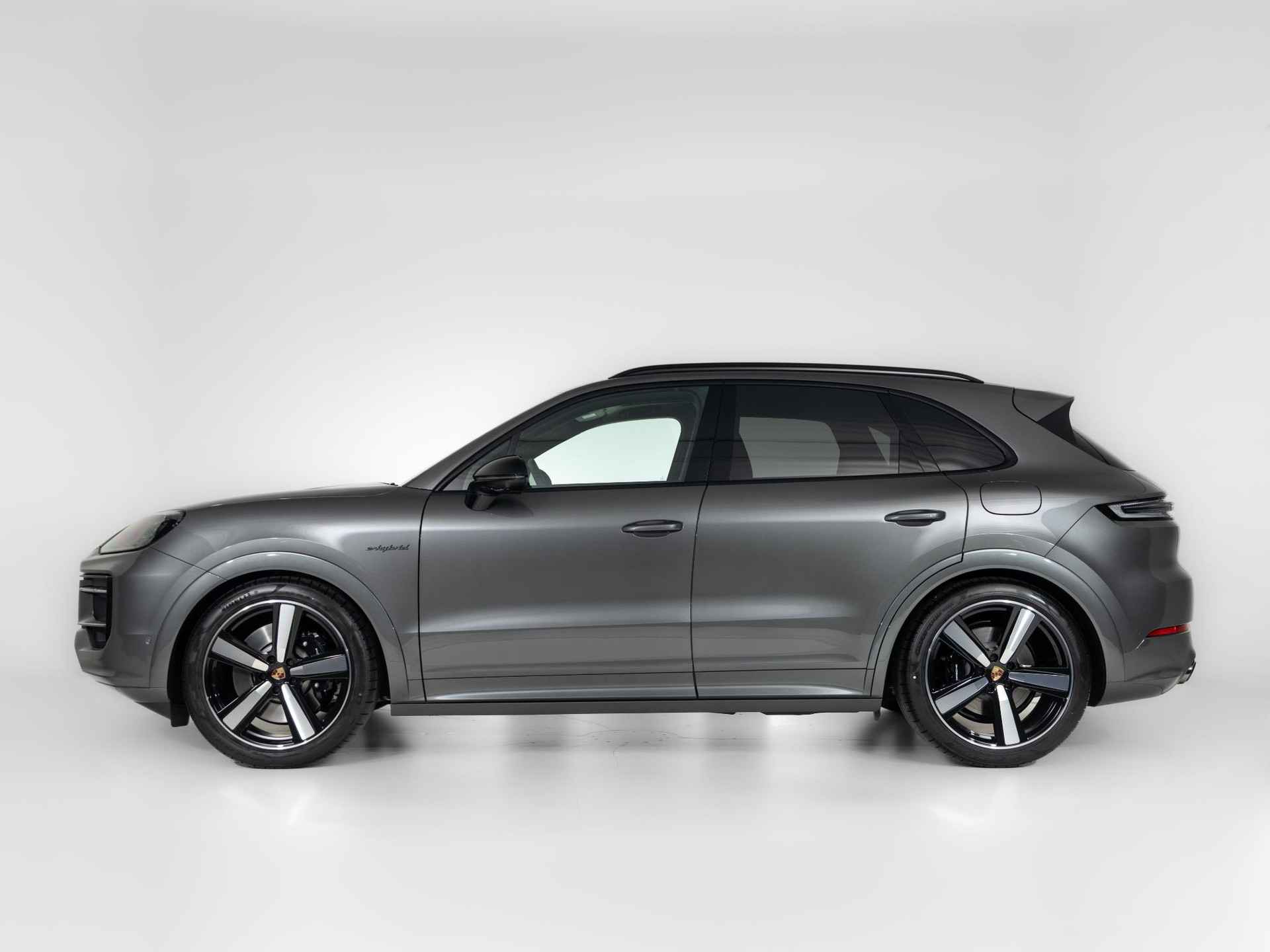 Deze Porsche cayenne S E-Hybrid Black Edition in de kleur Kwartsiet Grijs metallic is nog nieuw en ongeregistreerd. De Porsche onderscheidt zich onder andere door unieke opties, zoals; 22-inch Exclusive Design Sport wielen gespoten in Chromite zwart metallic, Hemelbekleding Race-Tex, Stoelventilatie voorstoelen en Porsche InnoDrive inclusief Active Lane Keeping. Uiteraard is dit exemplaar nog verder te verfraaien door hoogwaardige accessoires van Porsche Tequipement.