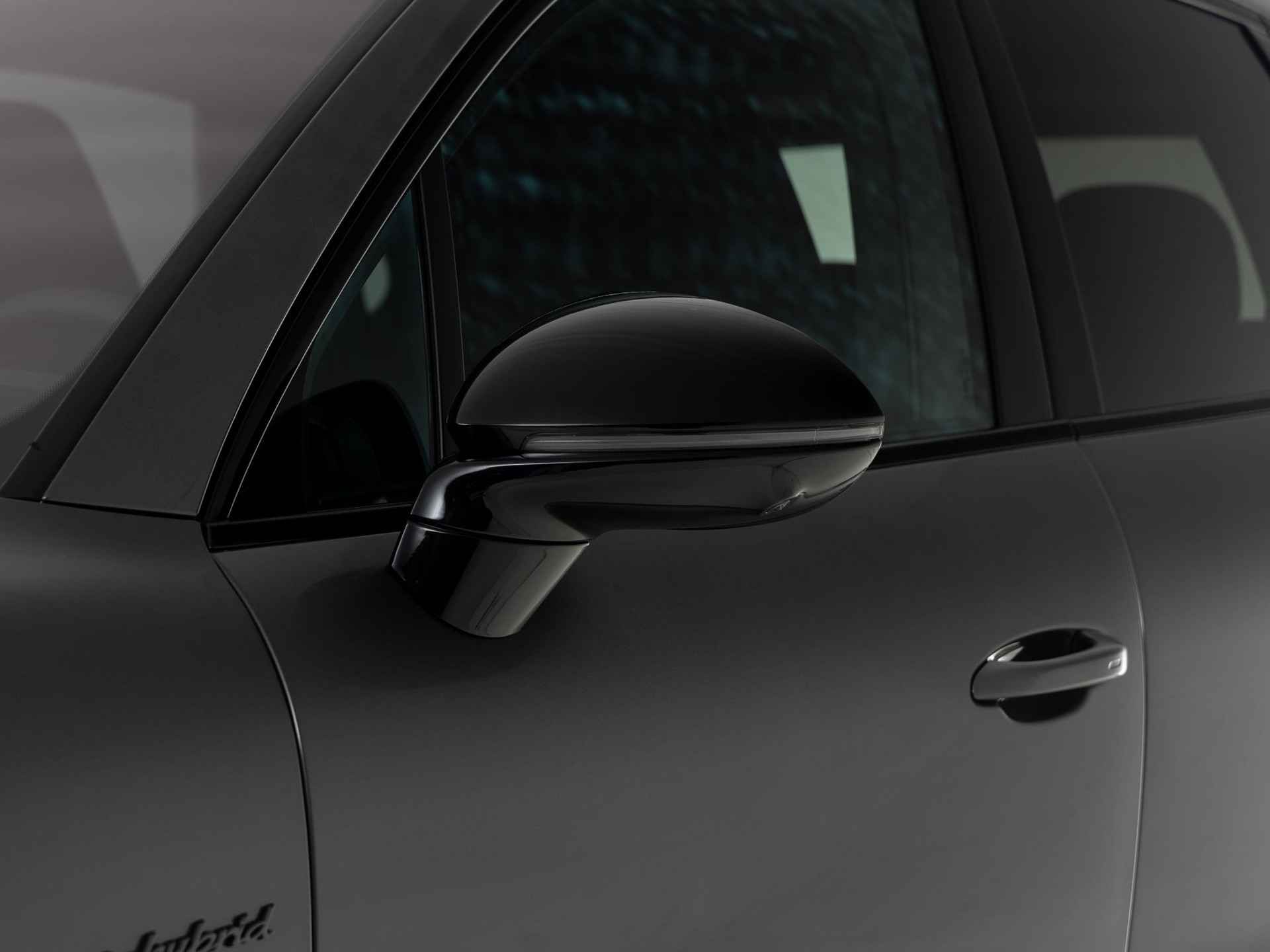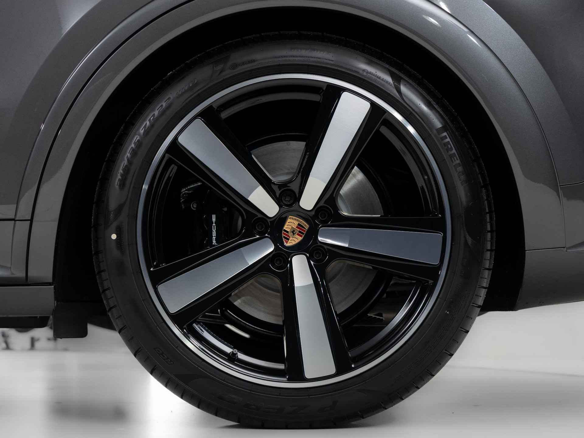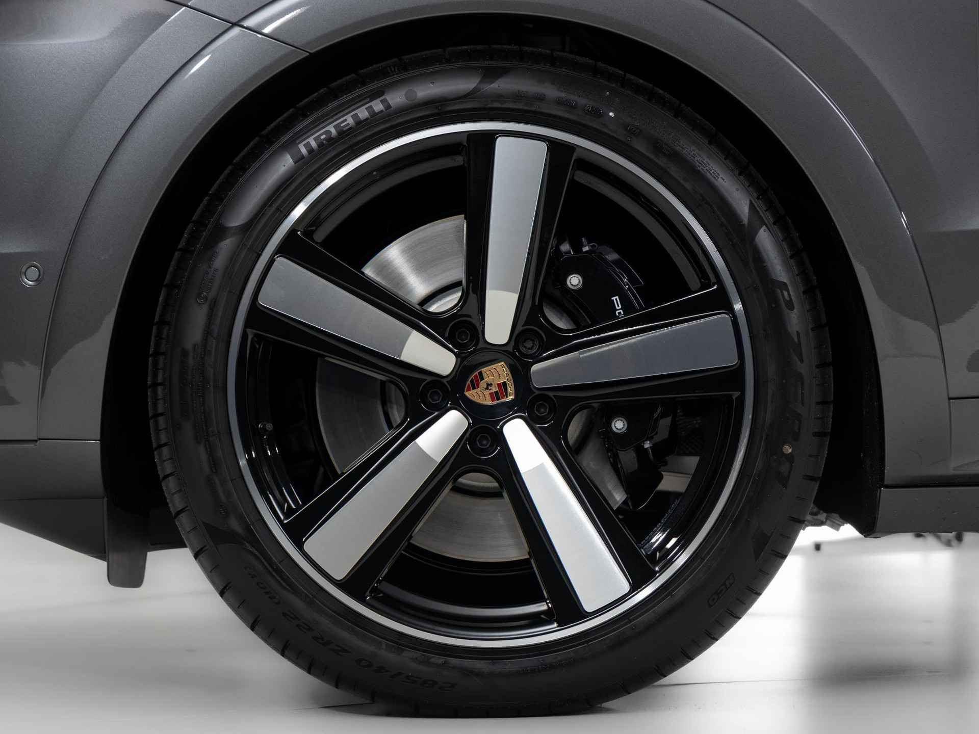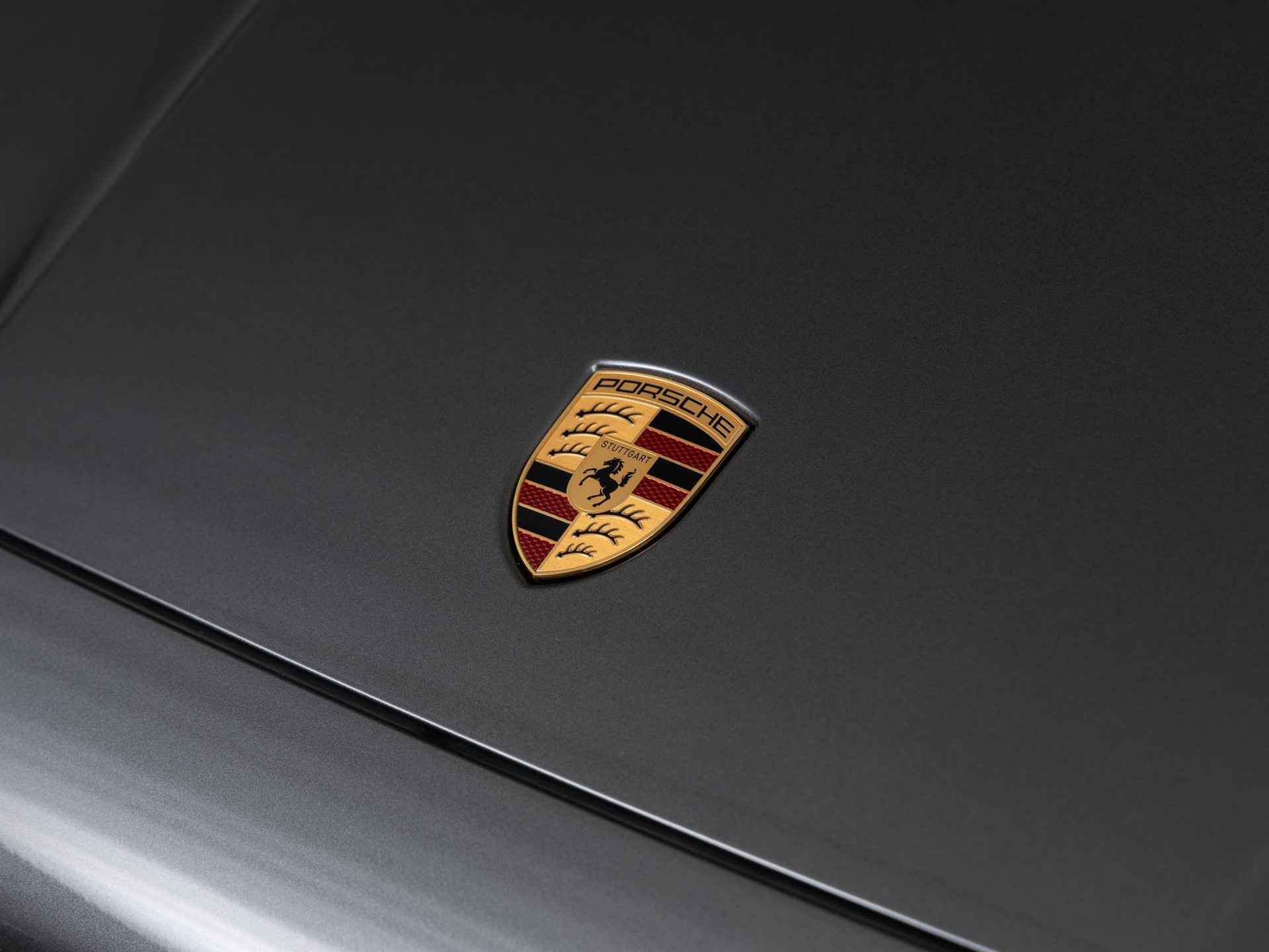 - ‘PORSCHE’ logo in hoogglans zwart gespoten en modelaanduiding in exterieurkleur gespoten (YAW)
