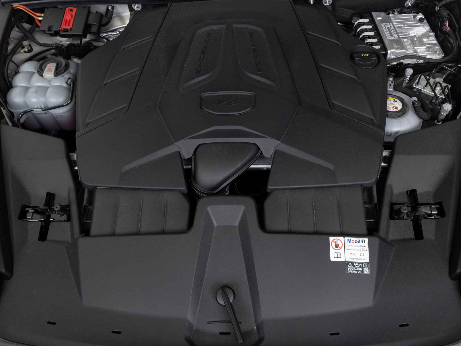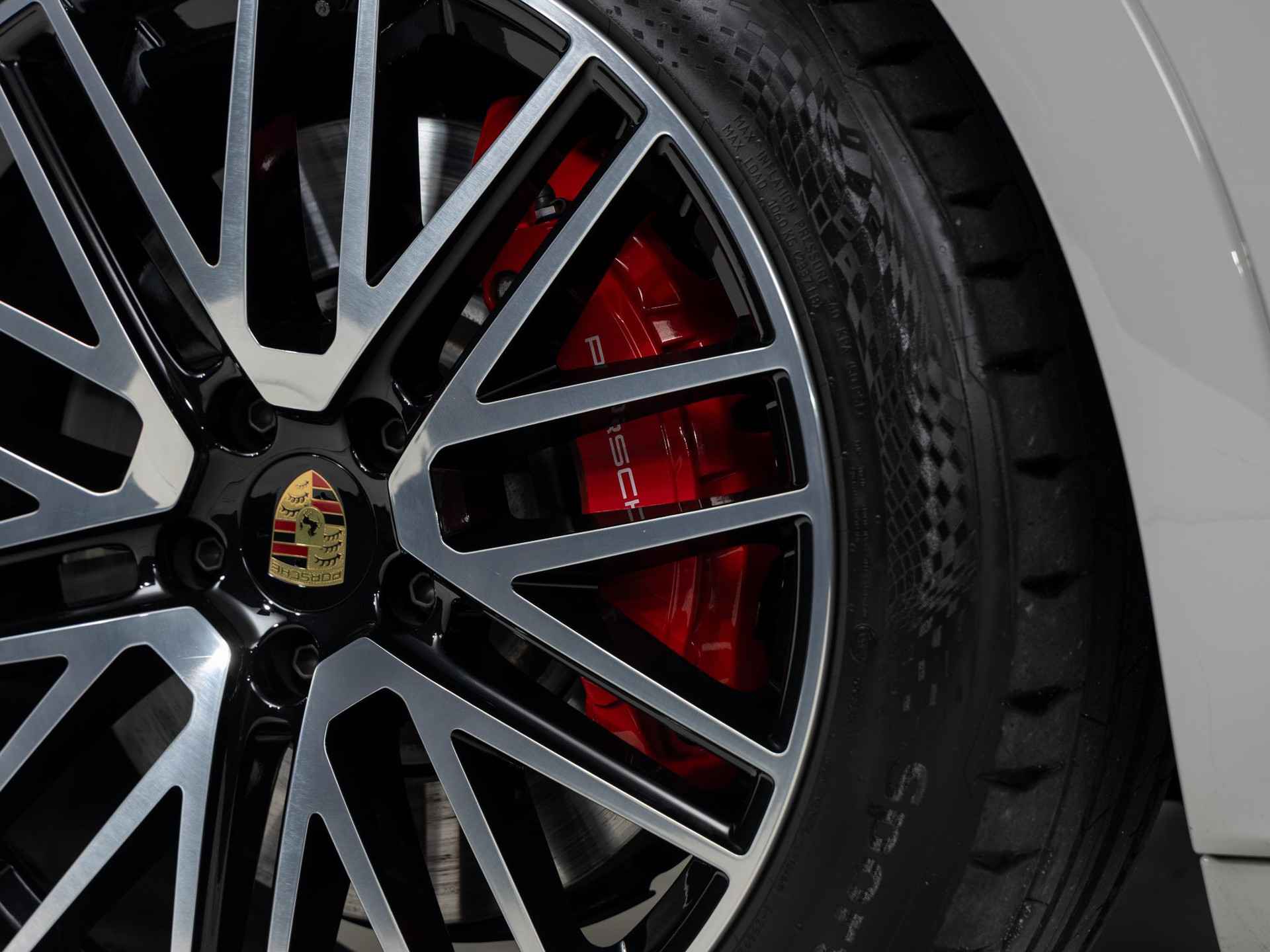 - 'PORSCHE' logo gespoten in hoogglans zwart en modelaanduiding gespoten in hoogglans zwart (0NC)