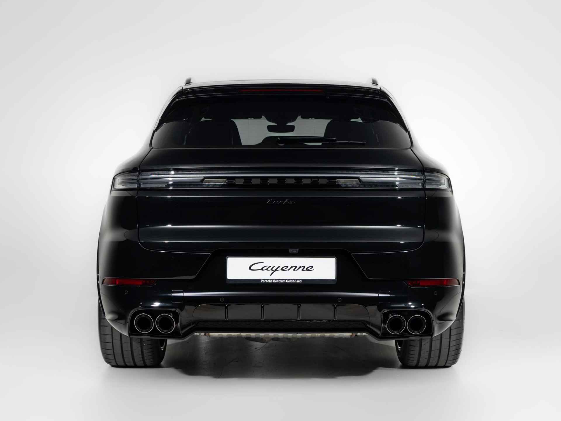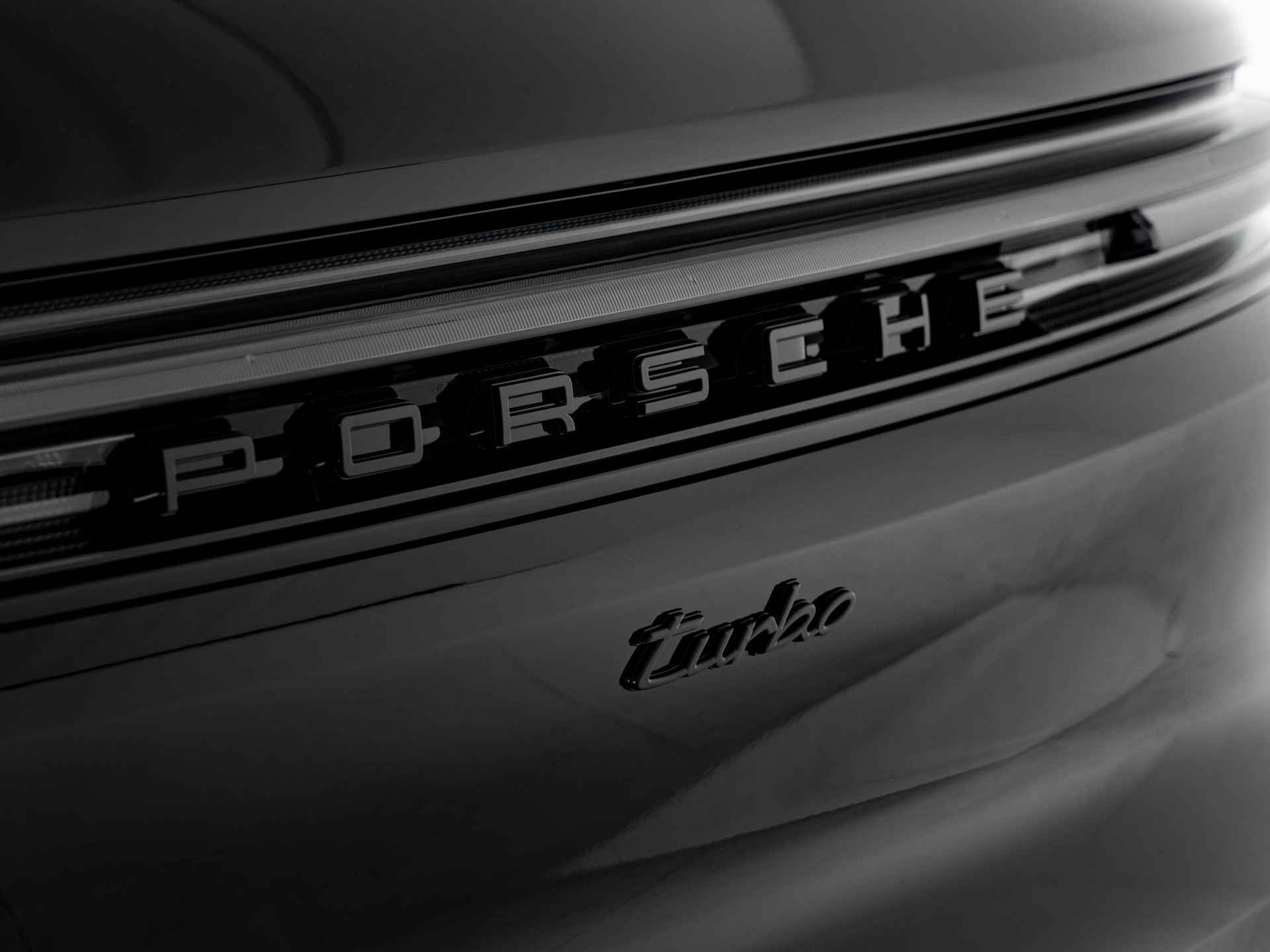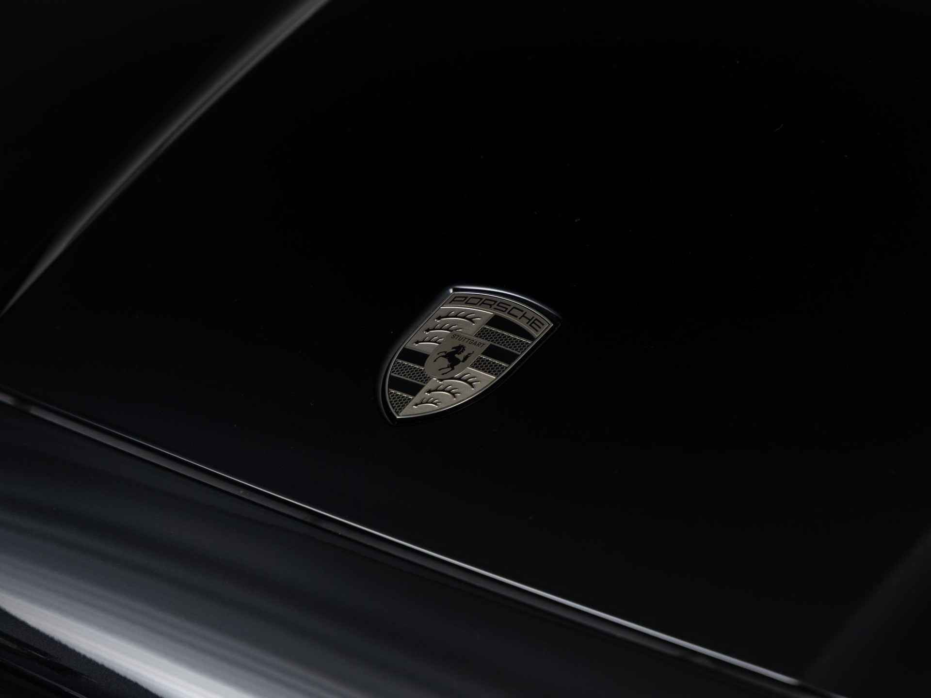 - 'PORSCHE' logo gespoten in hoogglans zwart en modelaanduiding gespoten in hoogglans zwart (0NC)