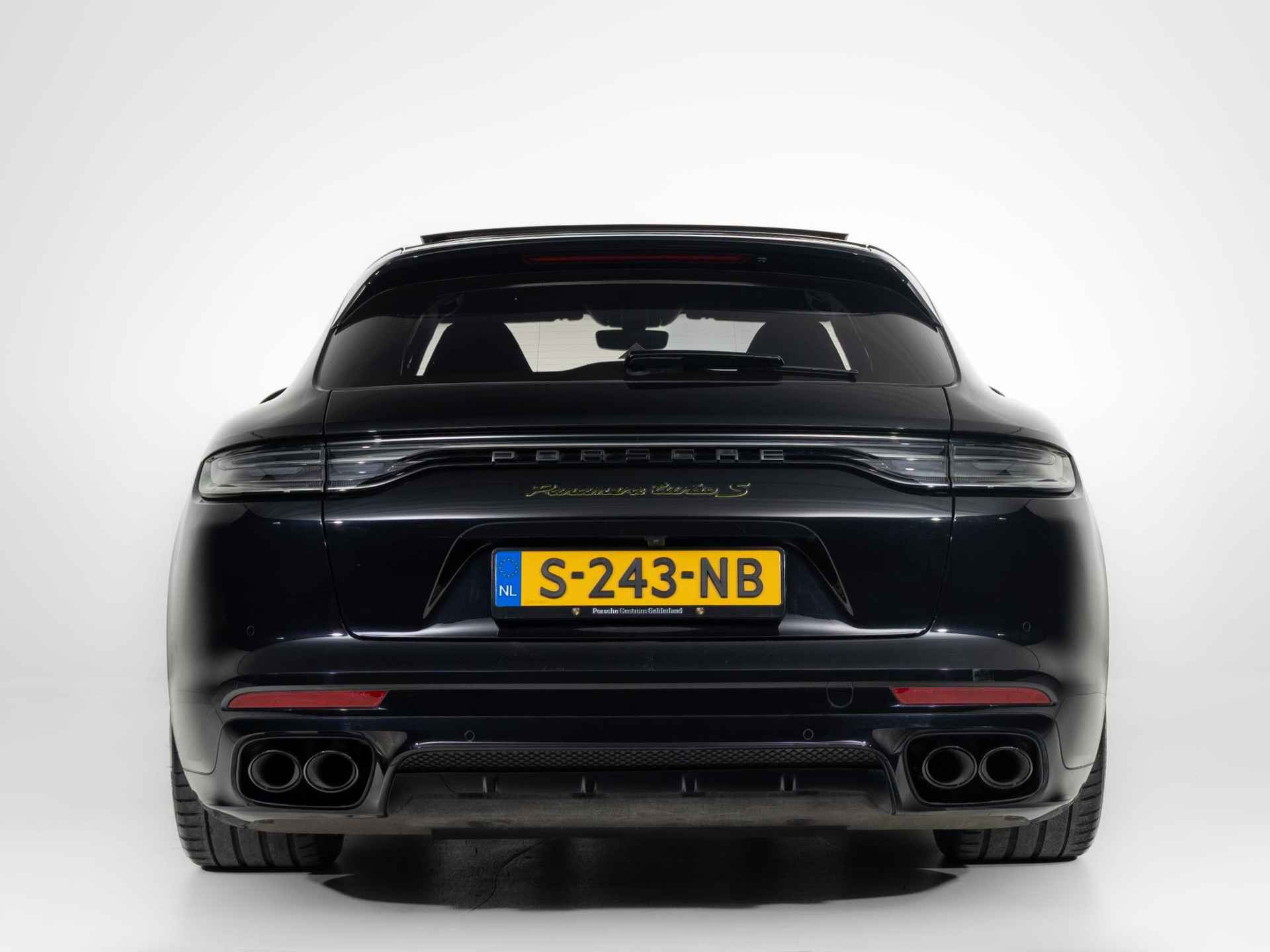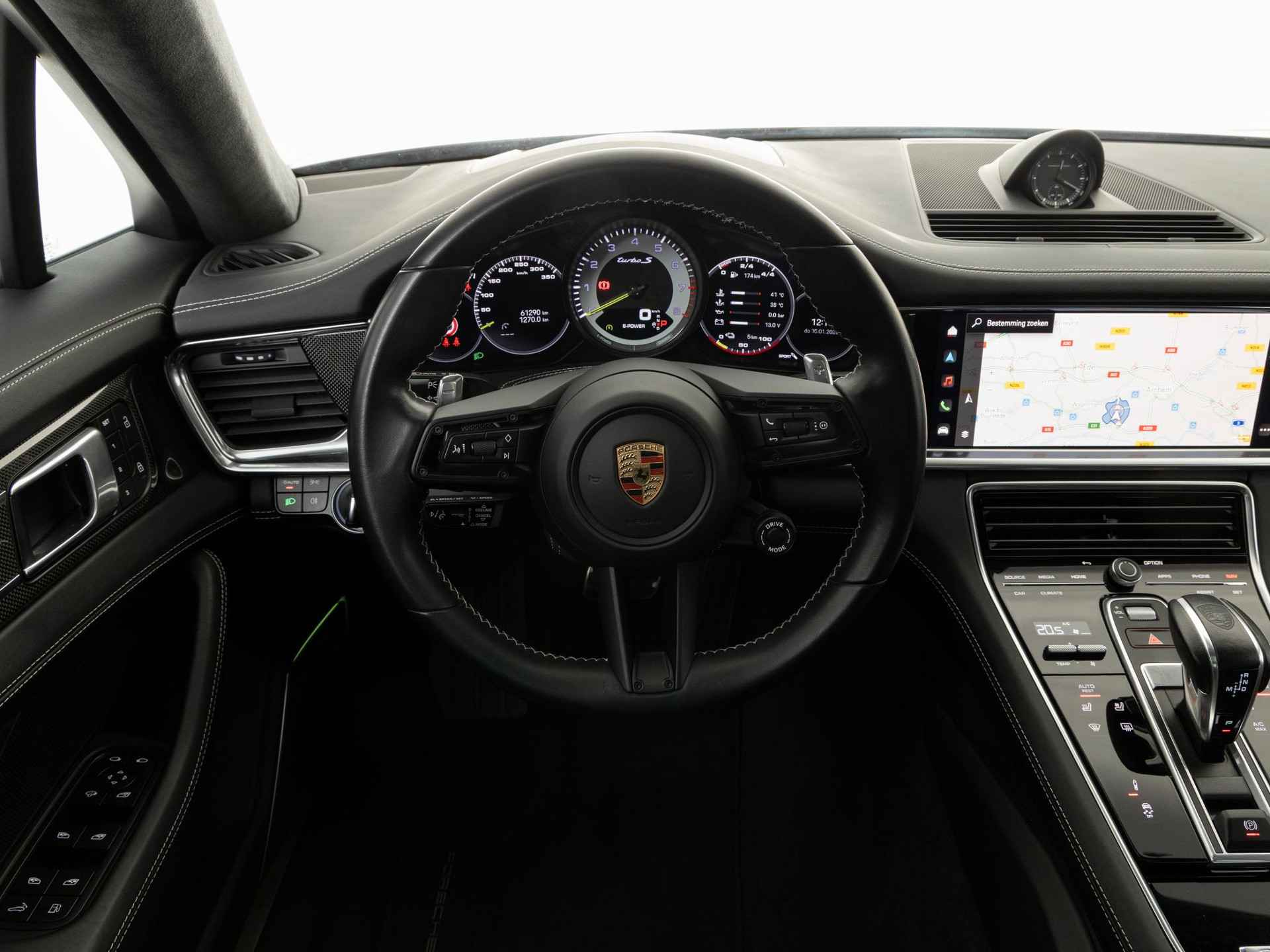 Deze Porsche Panamera Turbo S E-Hybrid Sport Turismoin de kleur Diepzwart metallic heeft slechts 61.286 kilometers gereden. De Porsche onderscheidt zich onder andere door unieke opties, zoals; Dashboardpakket in leder, Dorpelbekleding binnenzijde in leder, Interieurpakket stiksels in afwijkende kleur en de Stoelconsoles in leder (voor). Uiteraard is dit exemplaar nog verder te verfraaien door hoogwaardige accessoires van Porsche Tequipement.